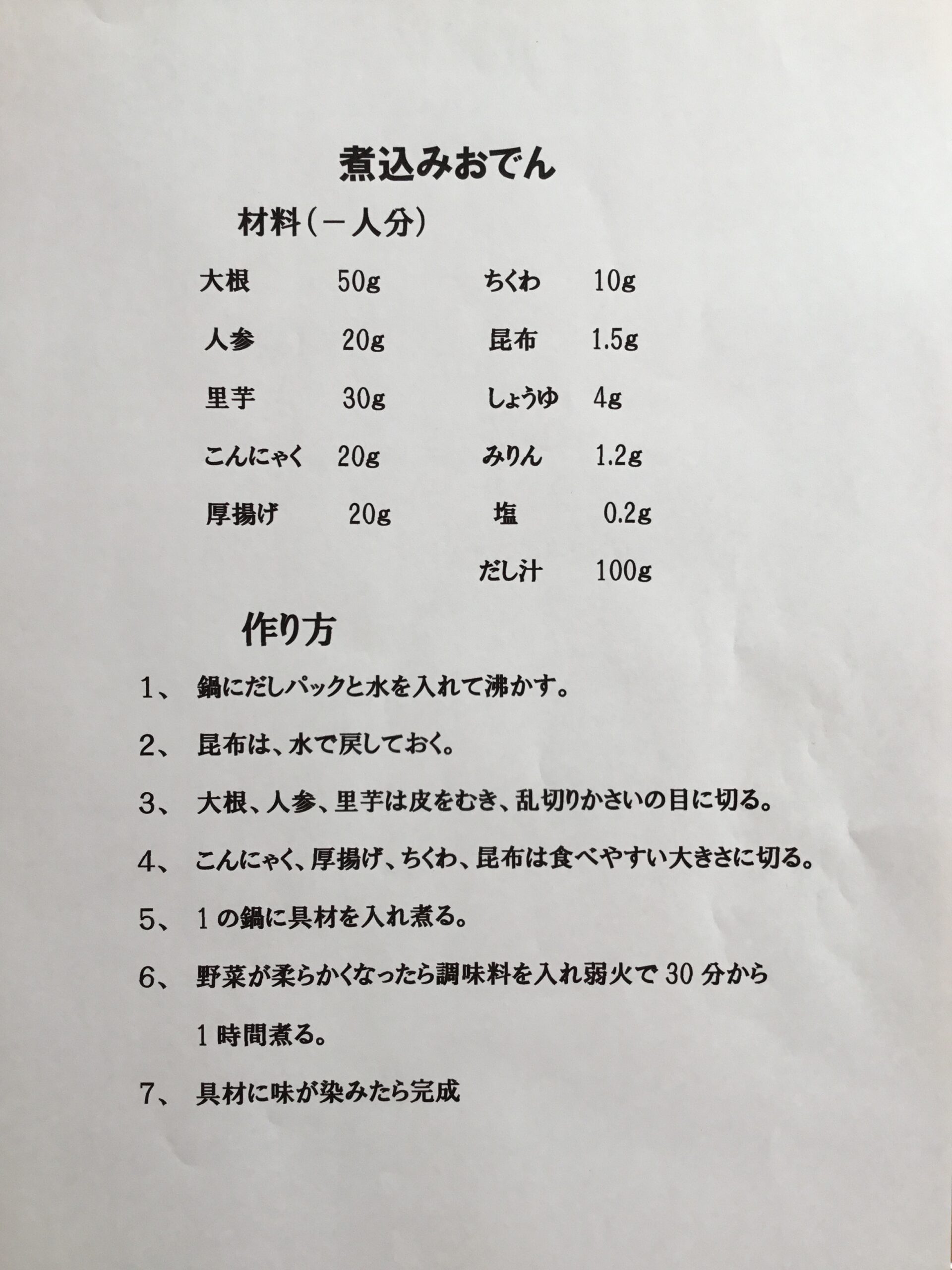 食育の日には、「煮込みおでん」が出ましたよ☺