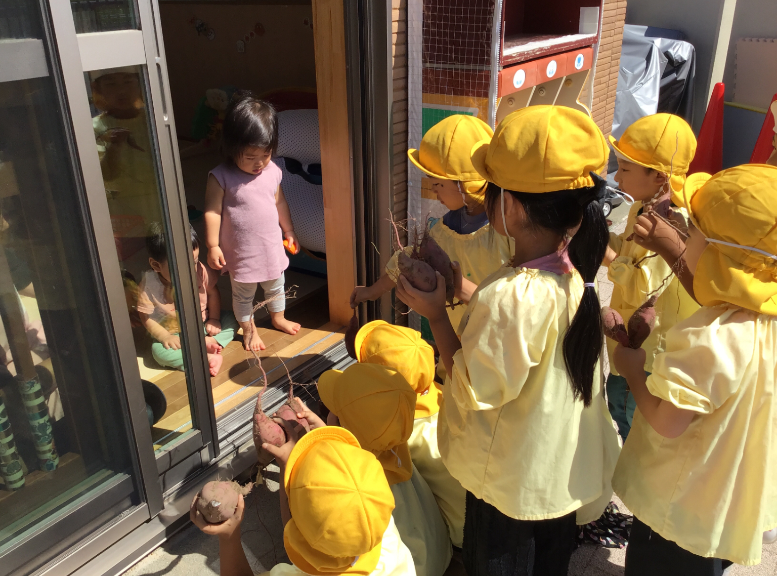 小さいお友だちにも掘ったお芋を見せました。