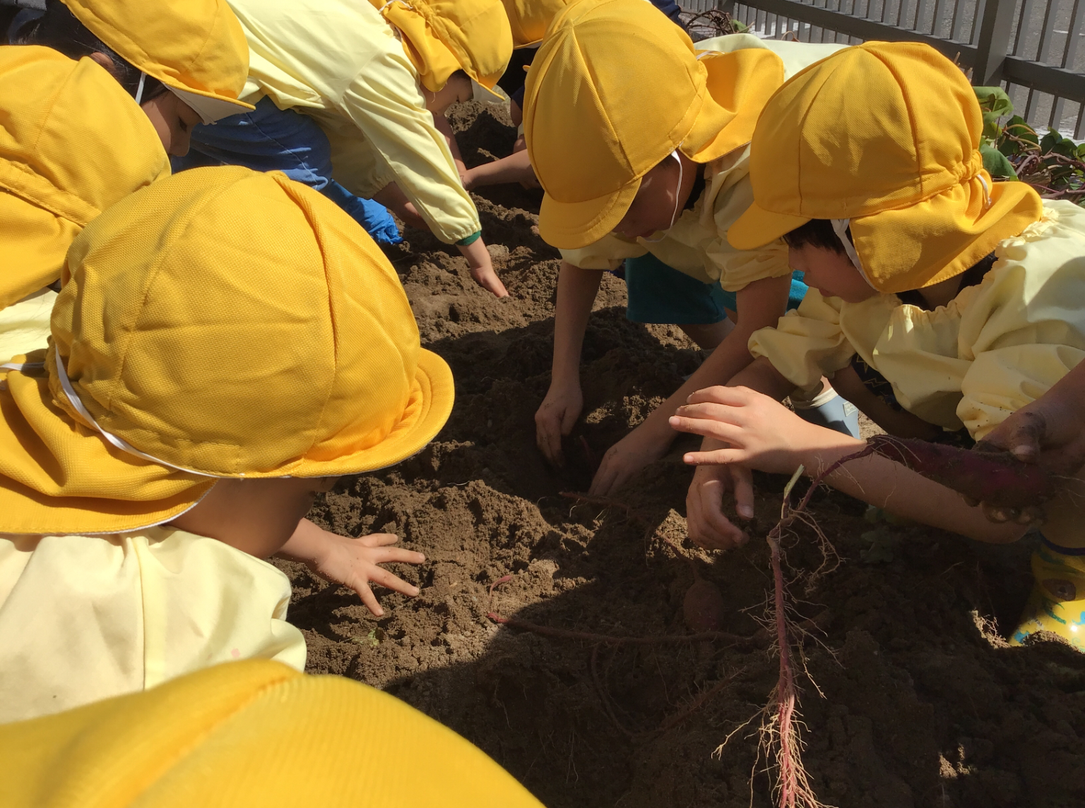 「うんとこしょ、どっこいしょ」と3人1組で力を合わせて掘りました。