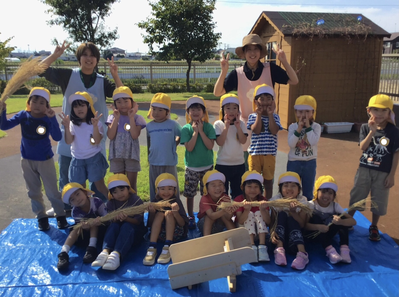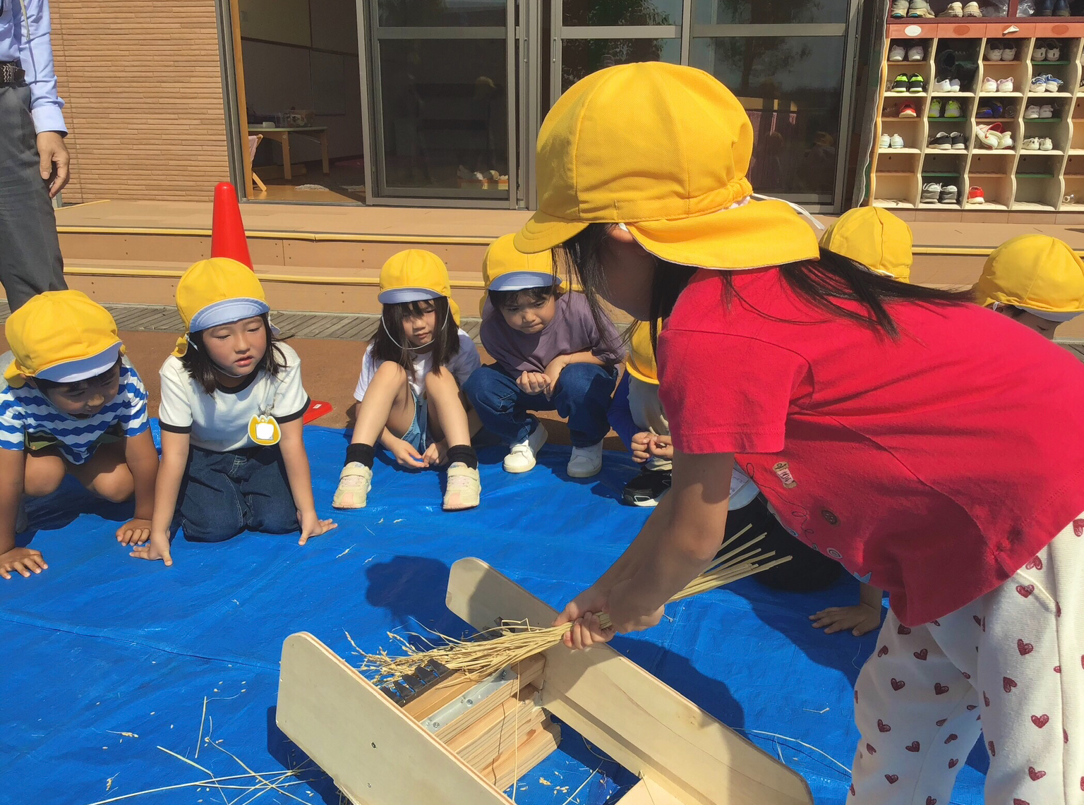 今日はみんなで育てたお米の脱穀をしましたよ!