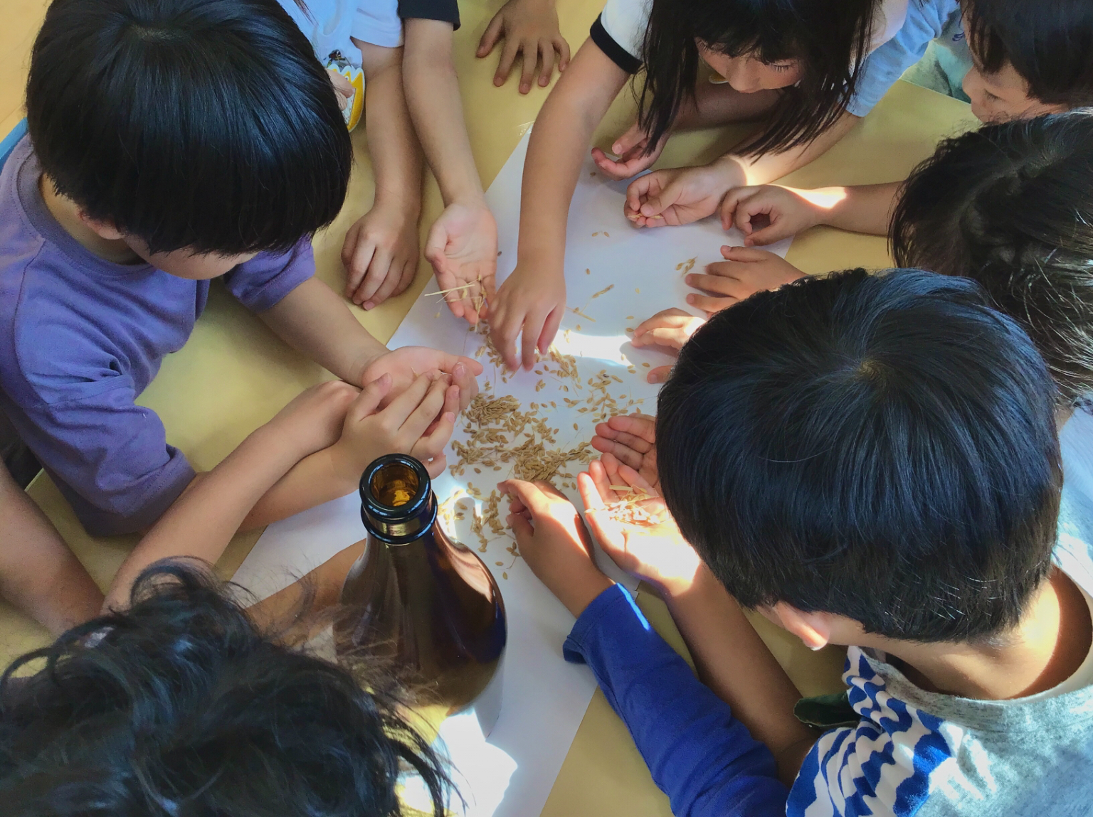 「お米ってこんな形なんだ」「硬いのとフニャフニャのがある!」「お米が入っていないんじゃない?」とお米一粒でいろんな発見がありました👀