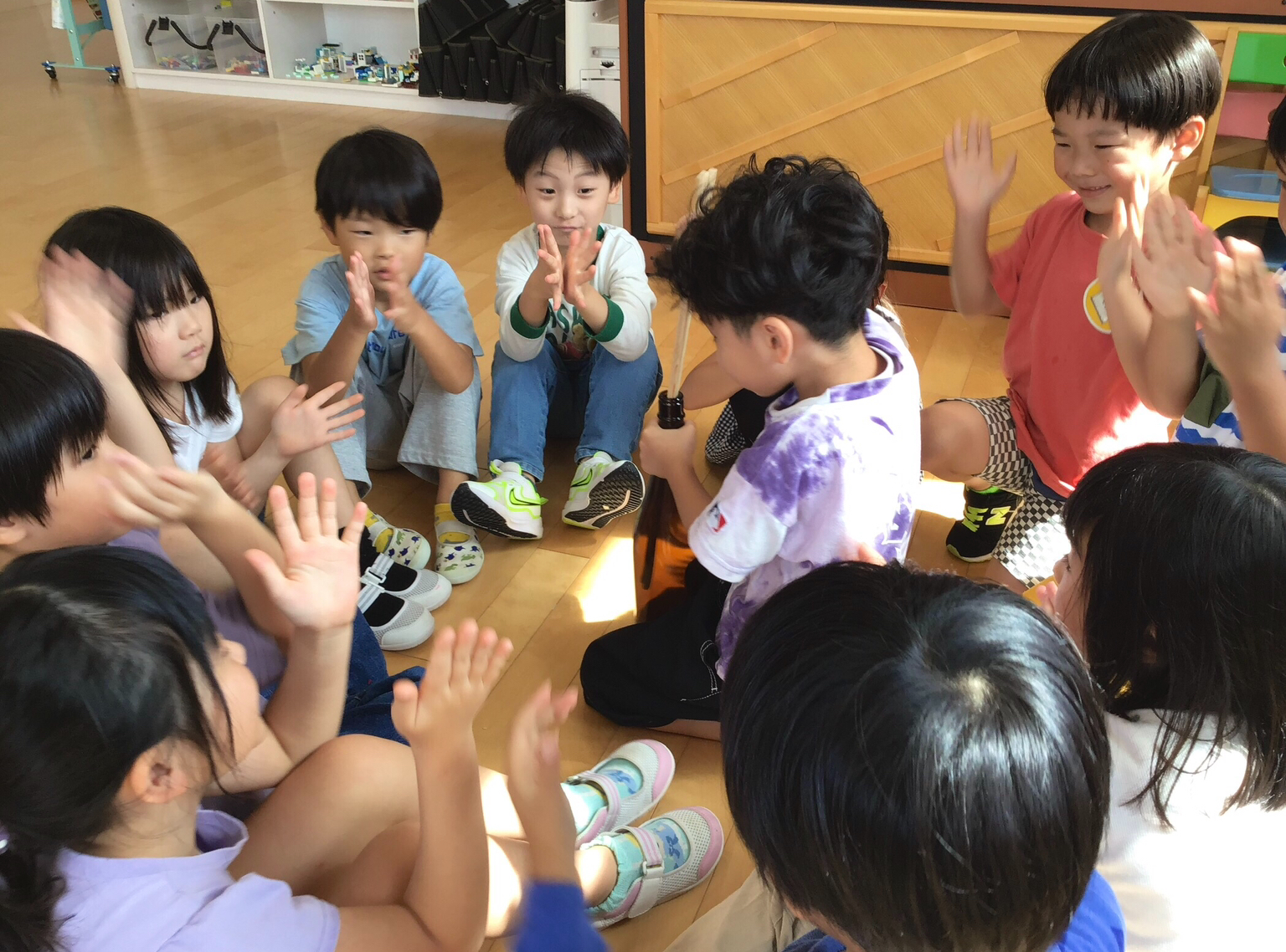 「1、2!ハイハイッ!」と独特なリズムでもみとりを応援するこどもたちでした。