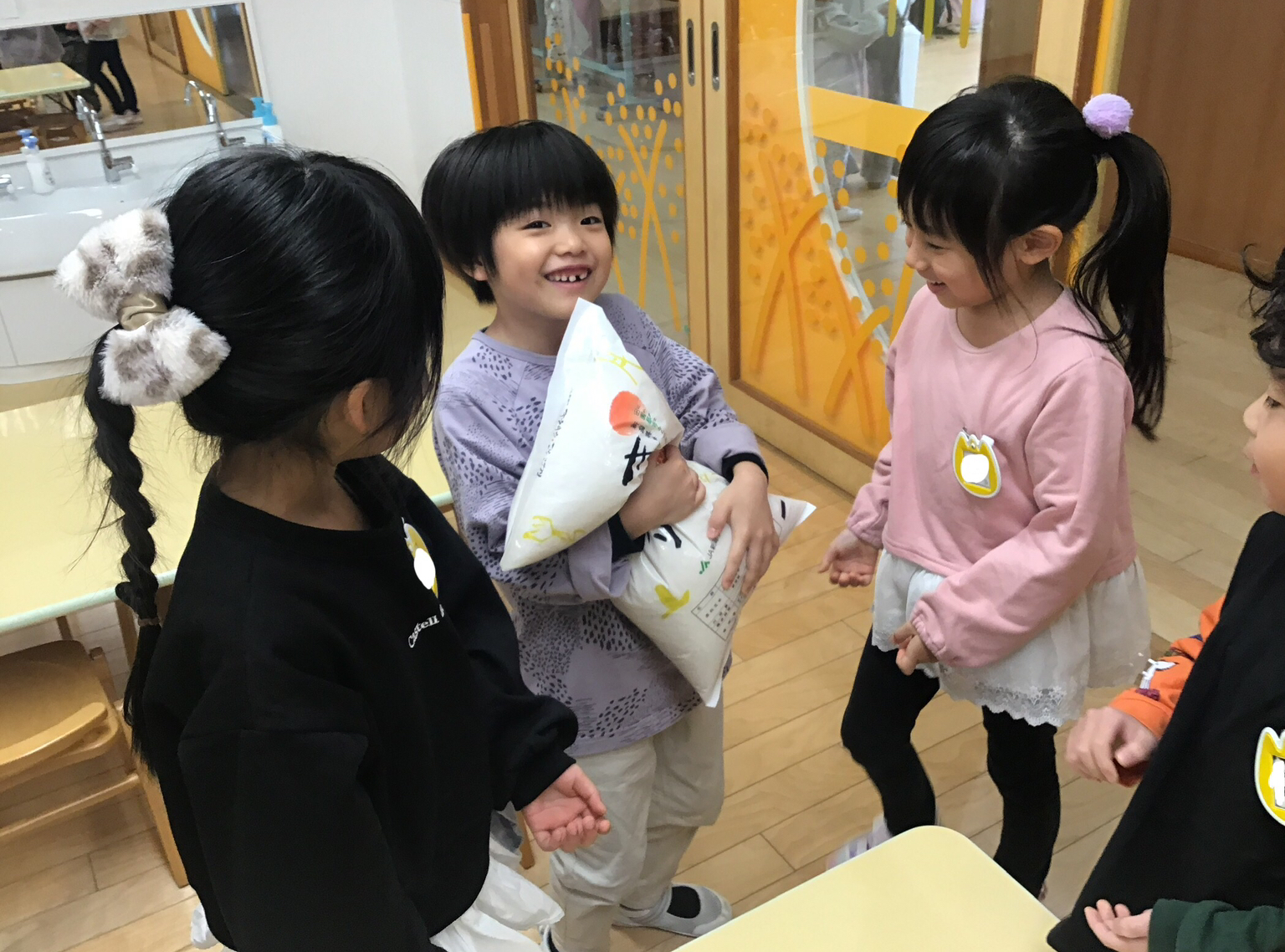 「あおぞら米は茶色いけど、新米は透明だ!」「新米の方が大きいね」と発見を喜ぶこどもたちでした。