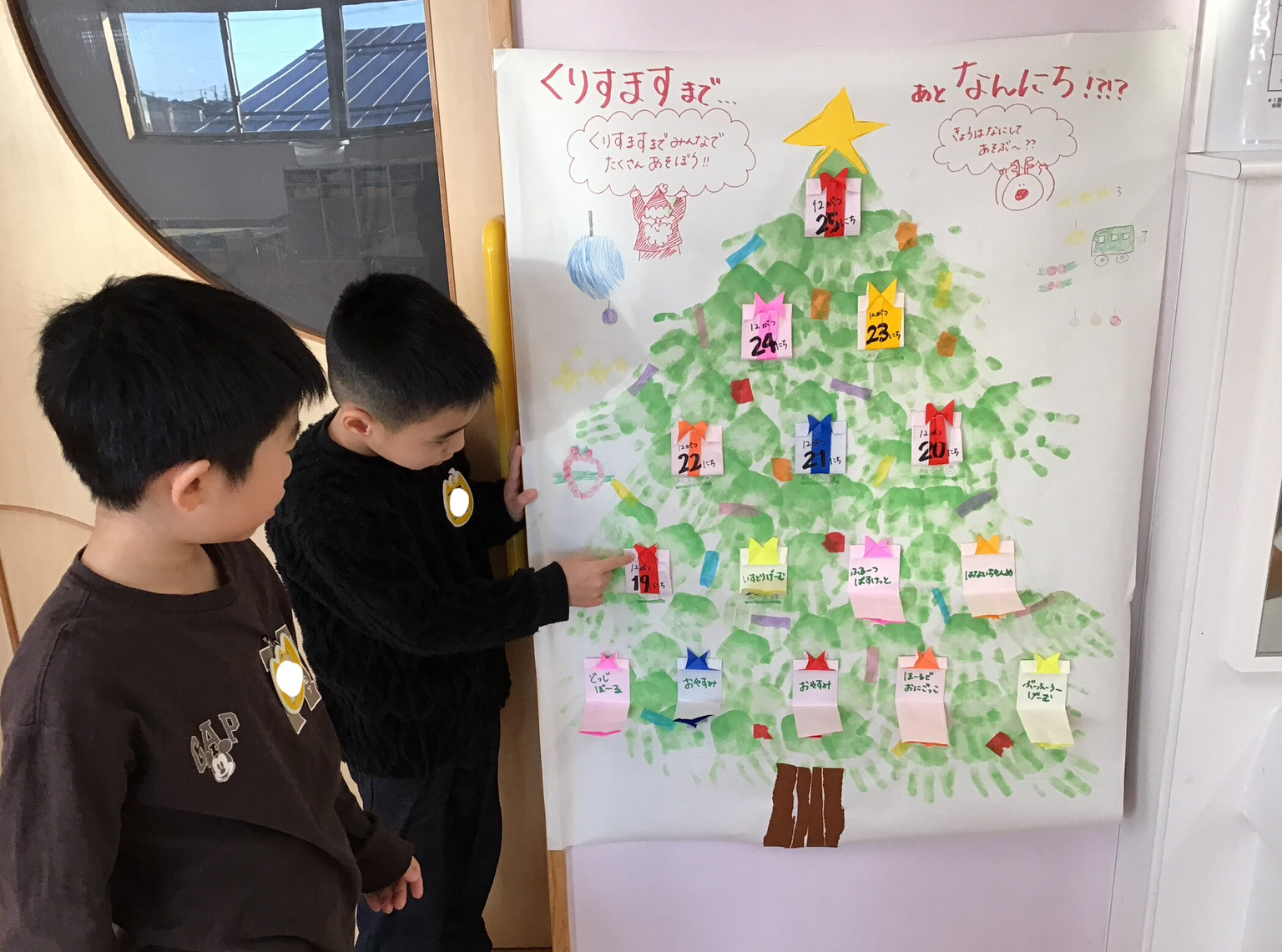あおぞら組では手作りのアドベントカレンダーで「クリスマスまであと何日…」カウントダウンをしています🎄