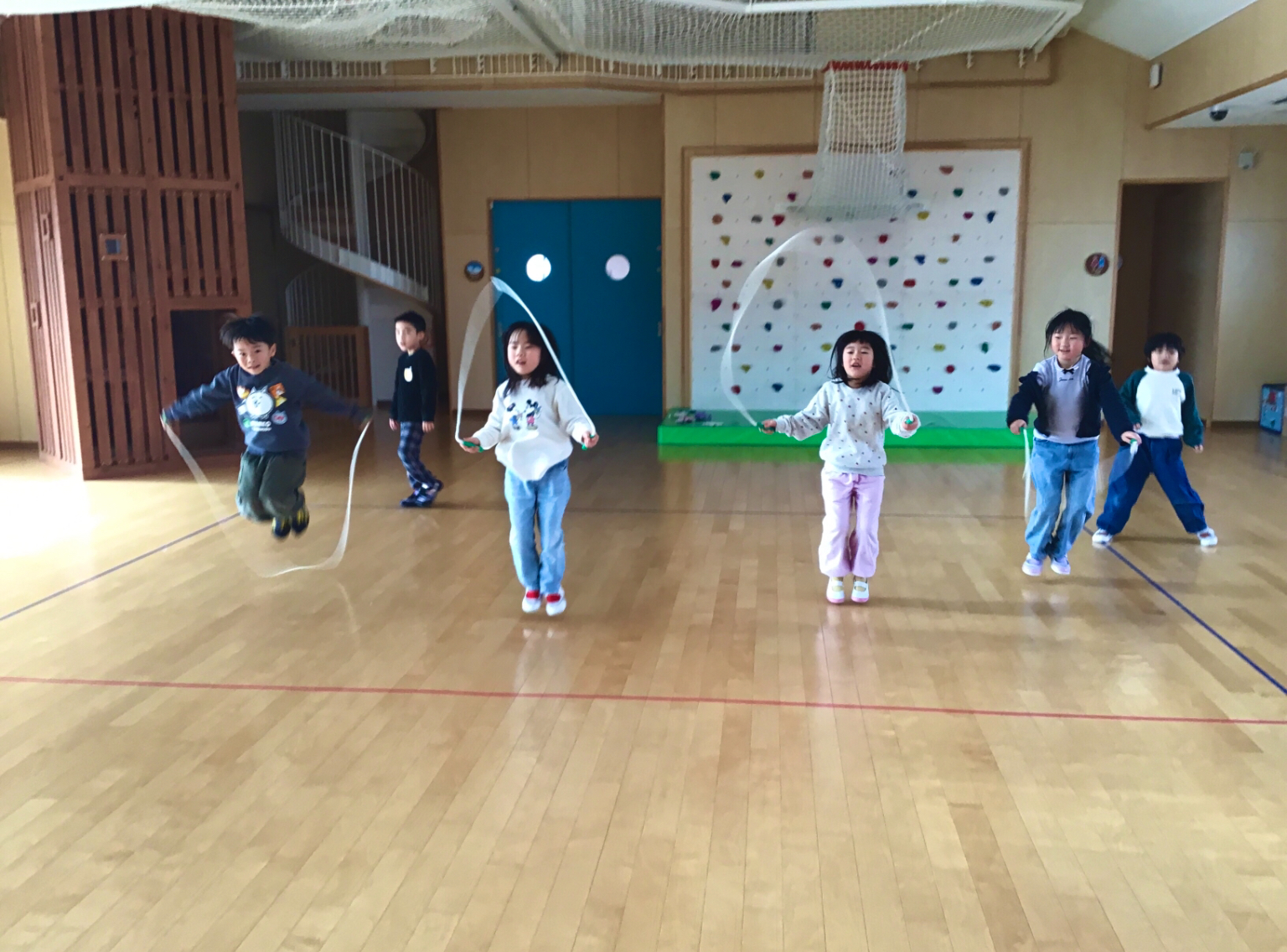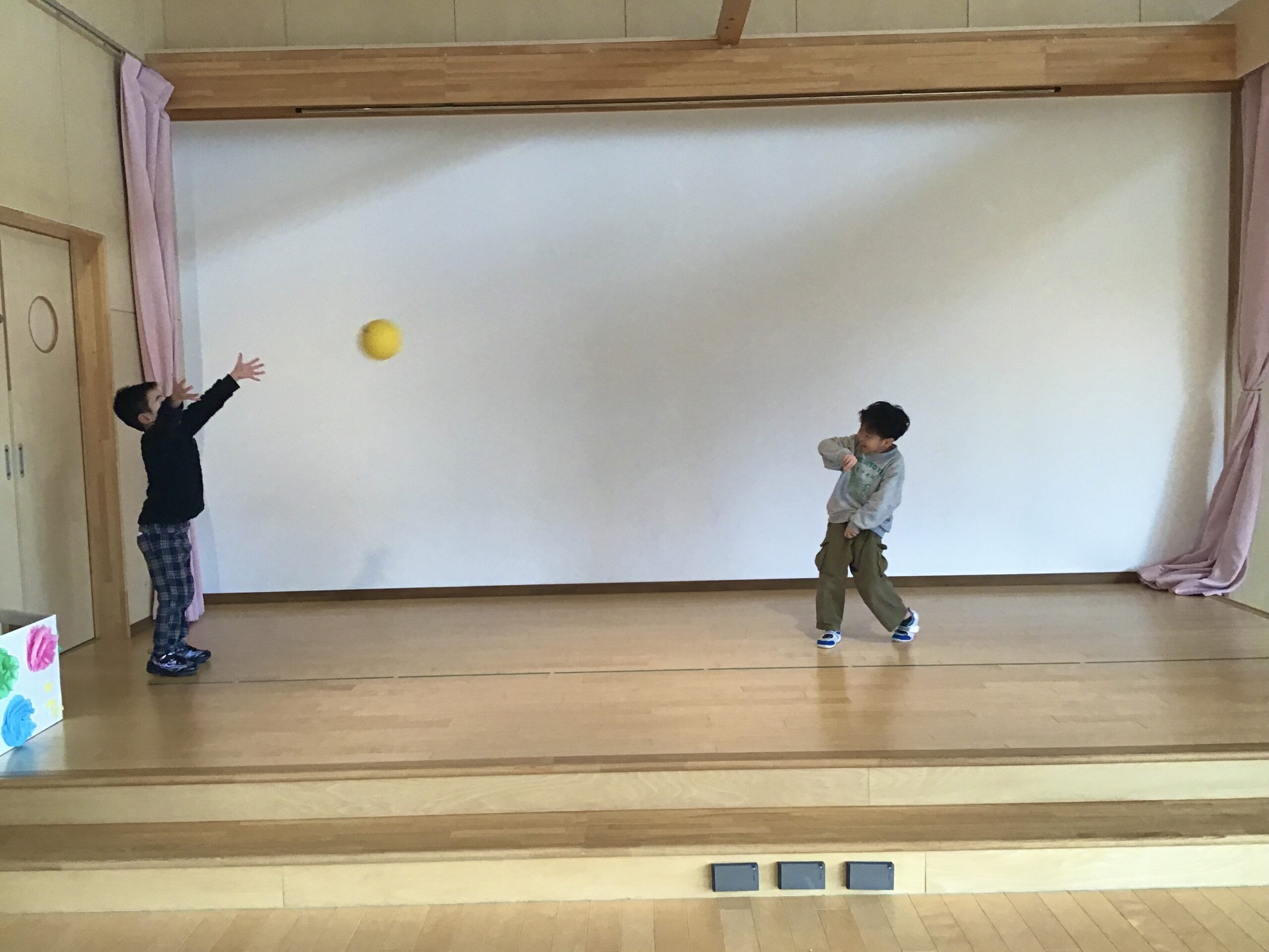 そんな今日は「発表会ごっこ」とは別にホールで思い切り体を動かして遊びました。