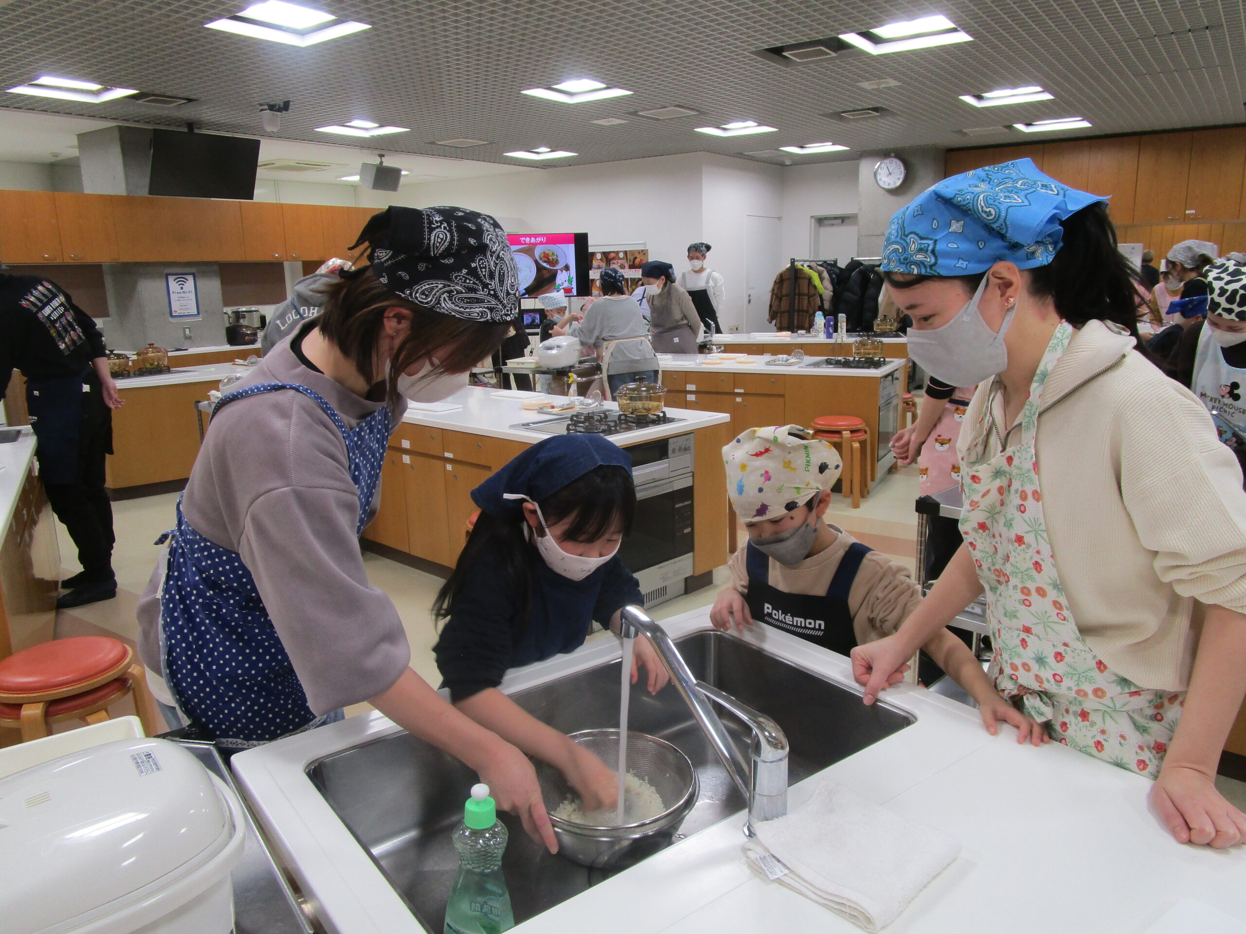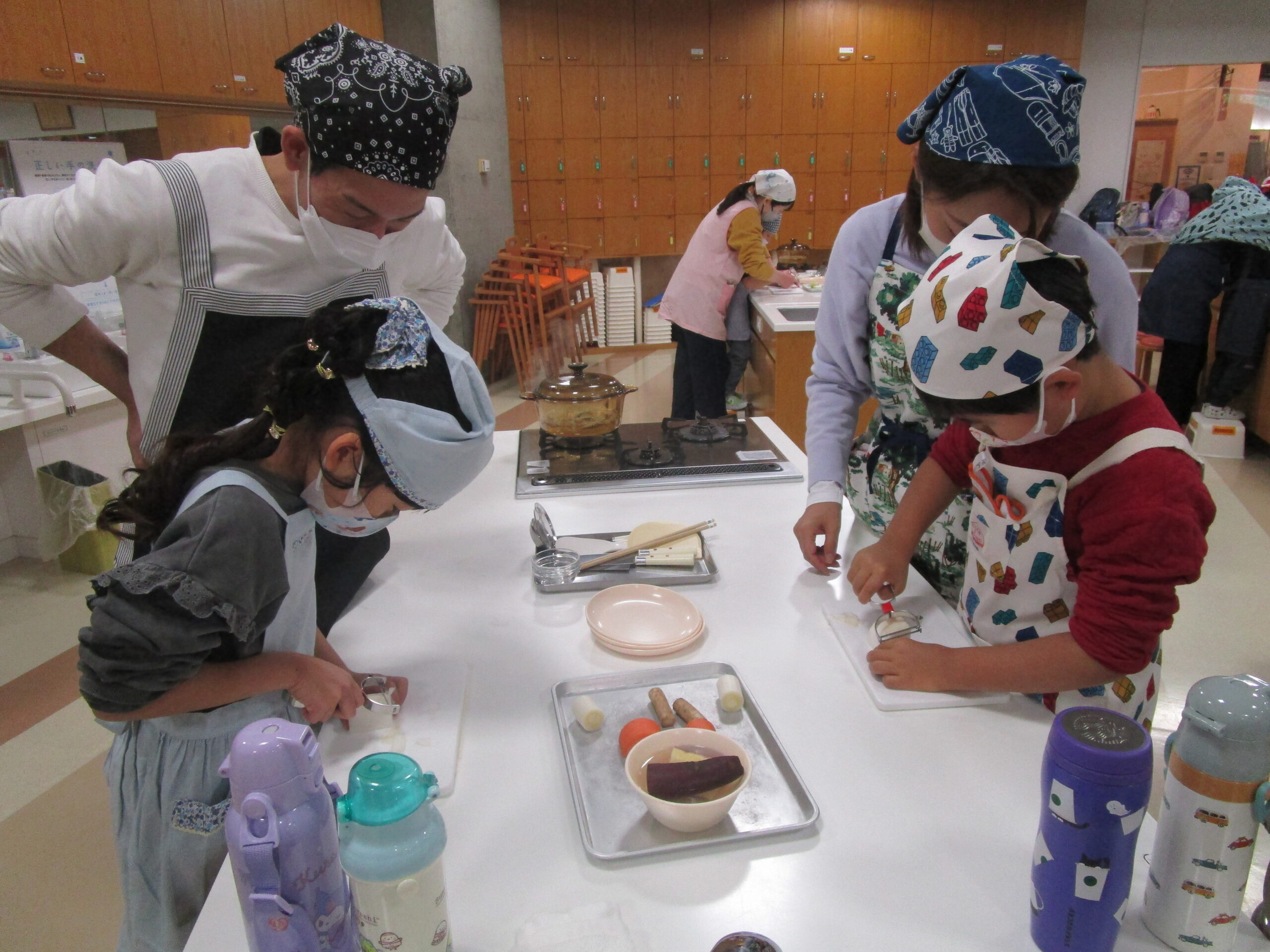 今回の親子クッキングではお米を研ぎ、大根や人参、さつまいも、ごぼう、ネギ…様々な野菜を切りました。