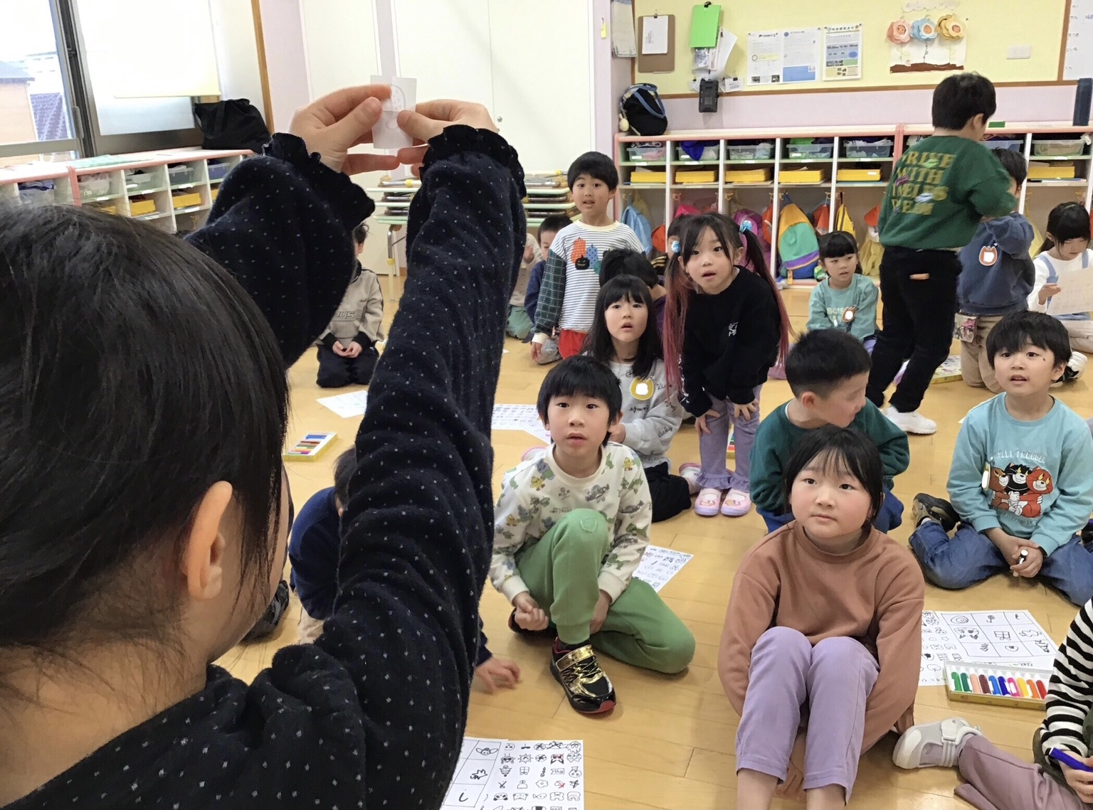 わかば組の保育室では二人一組になってビンゴ大会をしました。