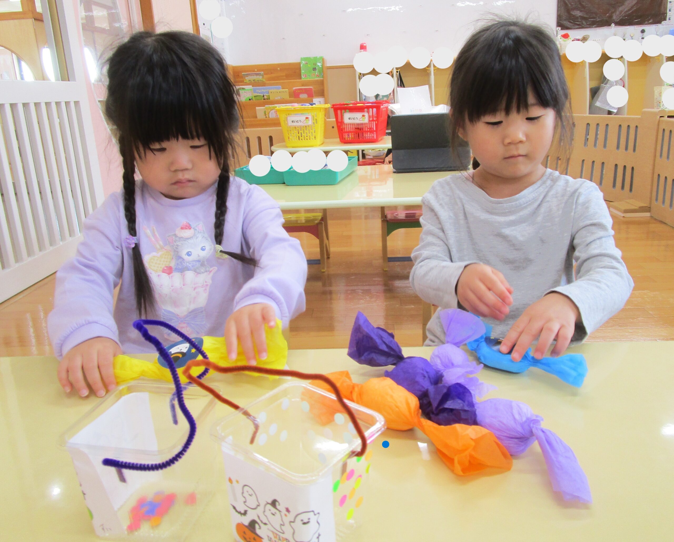 いちご組のこどもたちは先週からハロウィンの準備をしています。