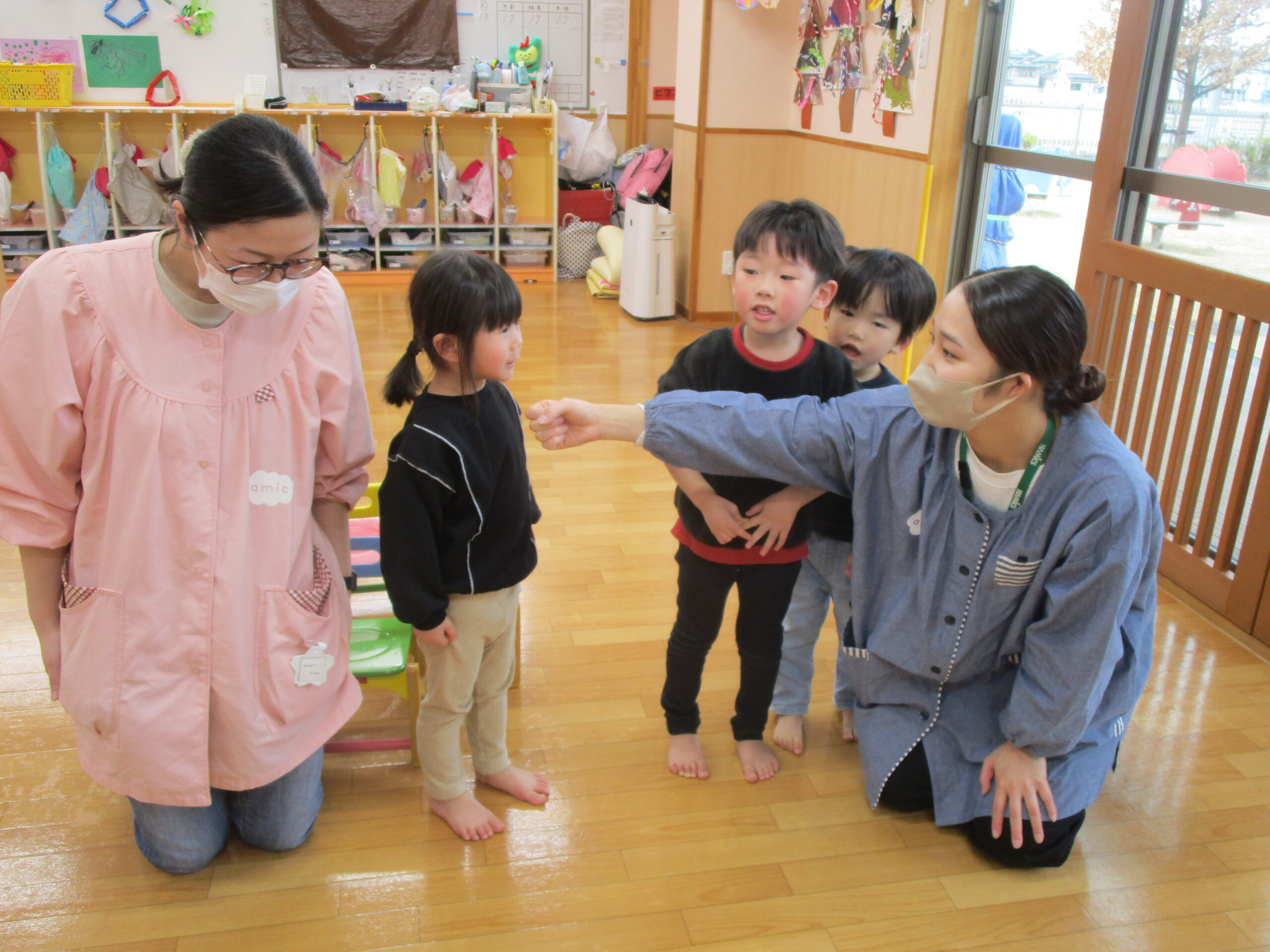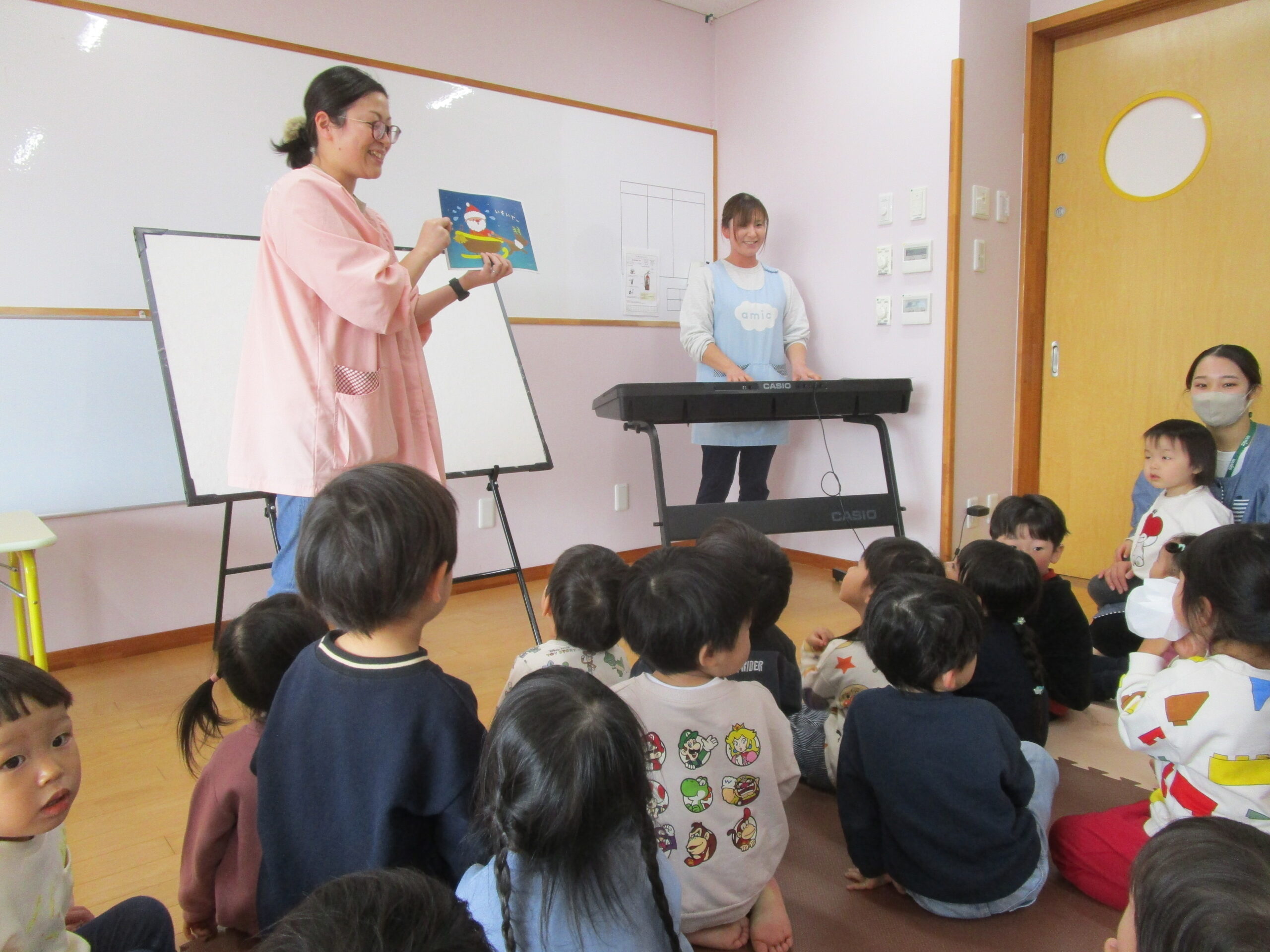 その後はみんなの部屋に行き、歌ったり、保育者によるパネルシアターを見たりして楽しい時間を過ごしました☺♪