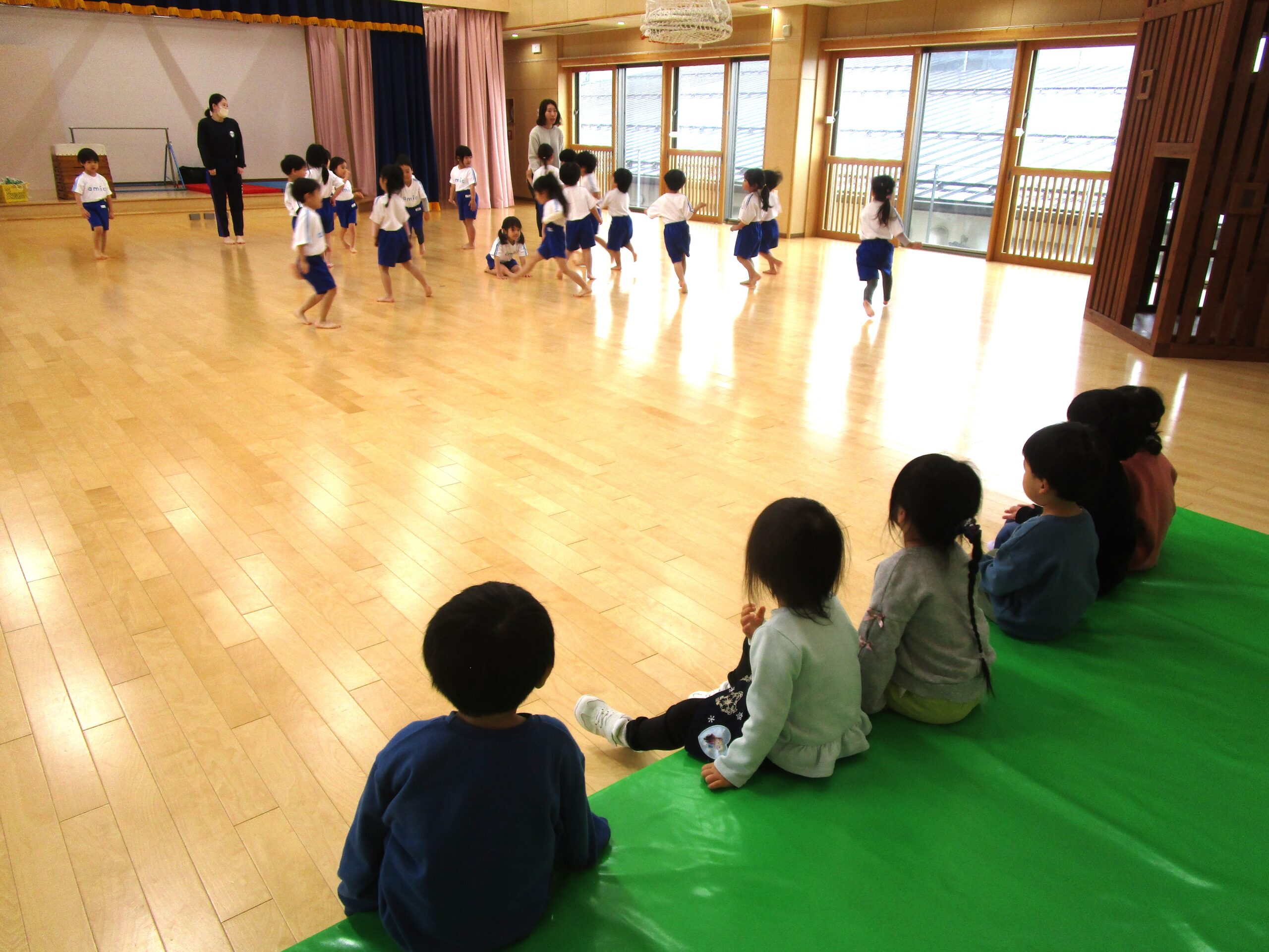 今週はいちご組みんなで、たんぽぽ組になってから始まる体育教室と造形教室の見学に行きました。ホールで体を動かすお兄さん、お姉さんや真剣な表情で取り組む姿を見て、こどもたちは興味津々👀