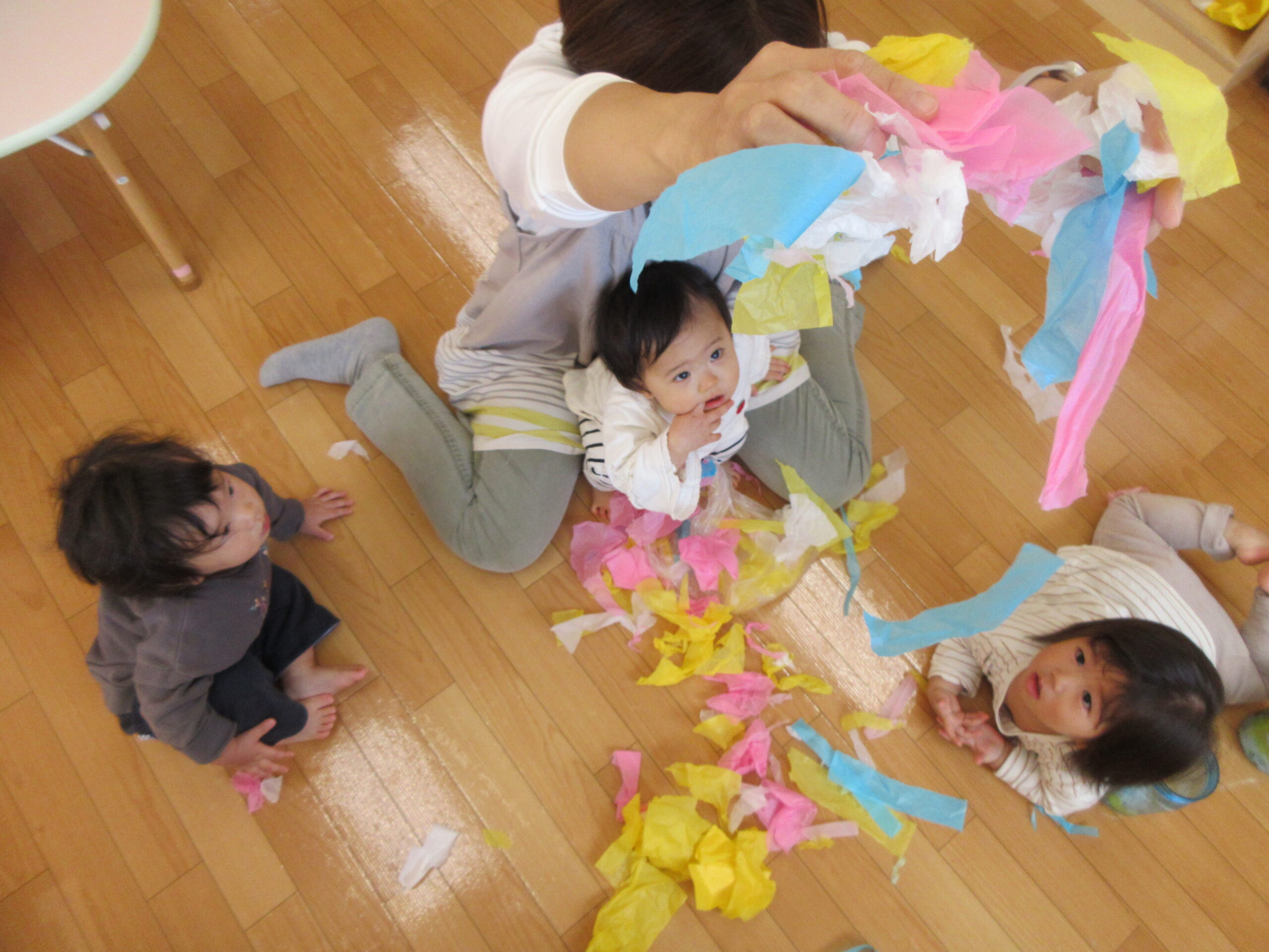 今日はおはながみを使って遊んでみました♪