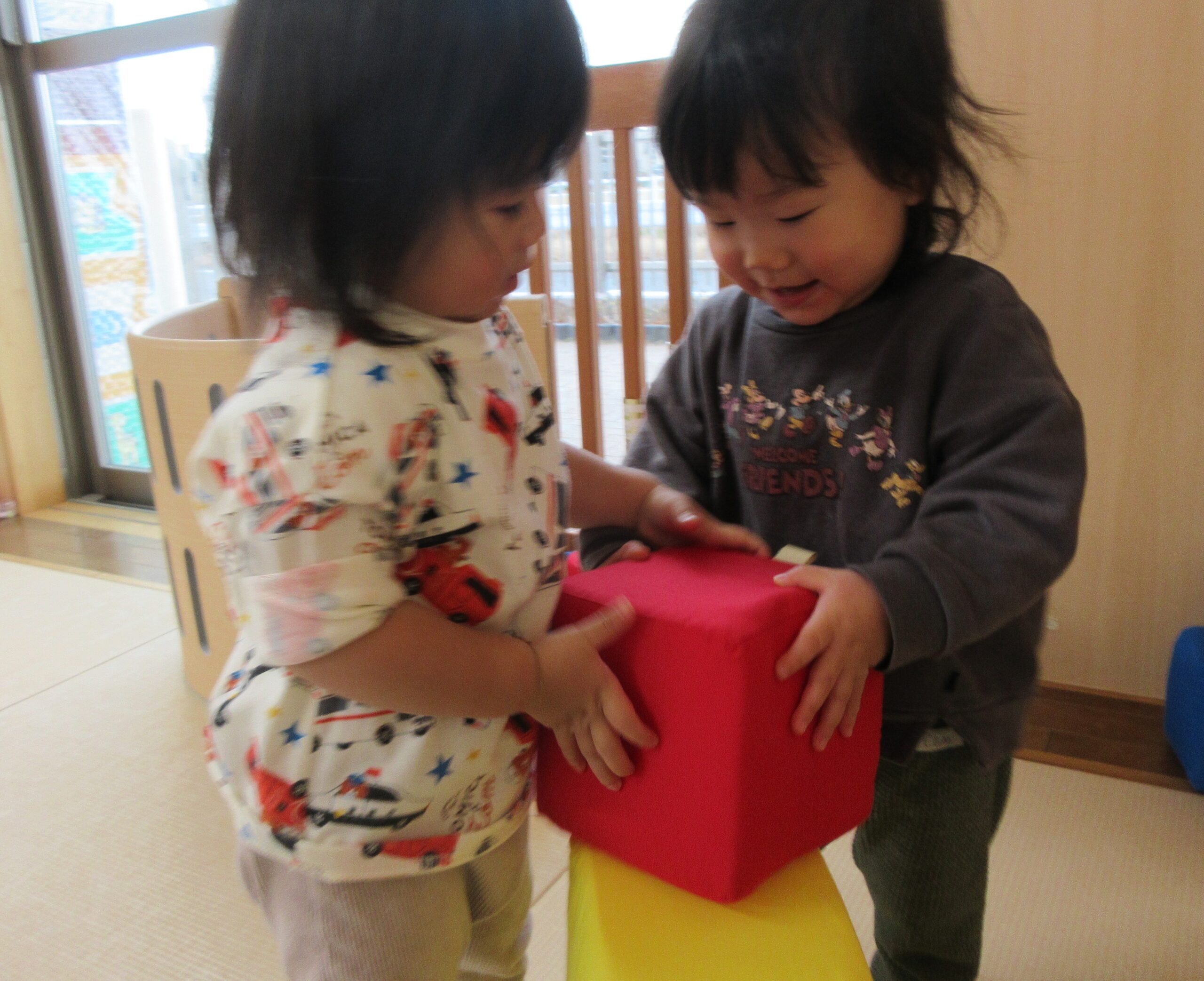 少しずつ周りの様子に目を向けはじめ、お友だちの傍で遊んだり関わってみたりする