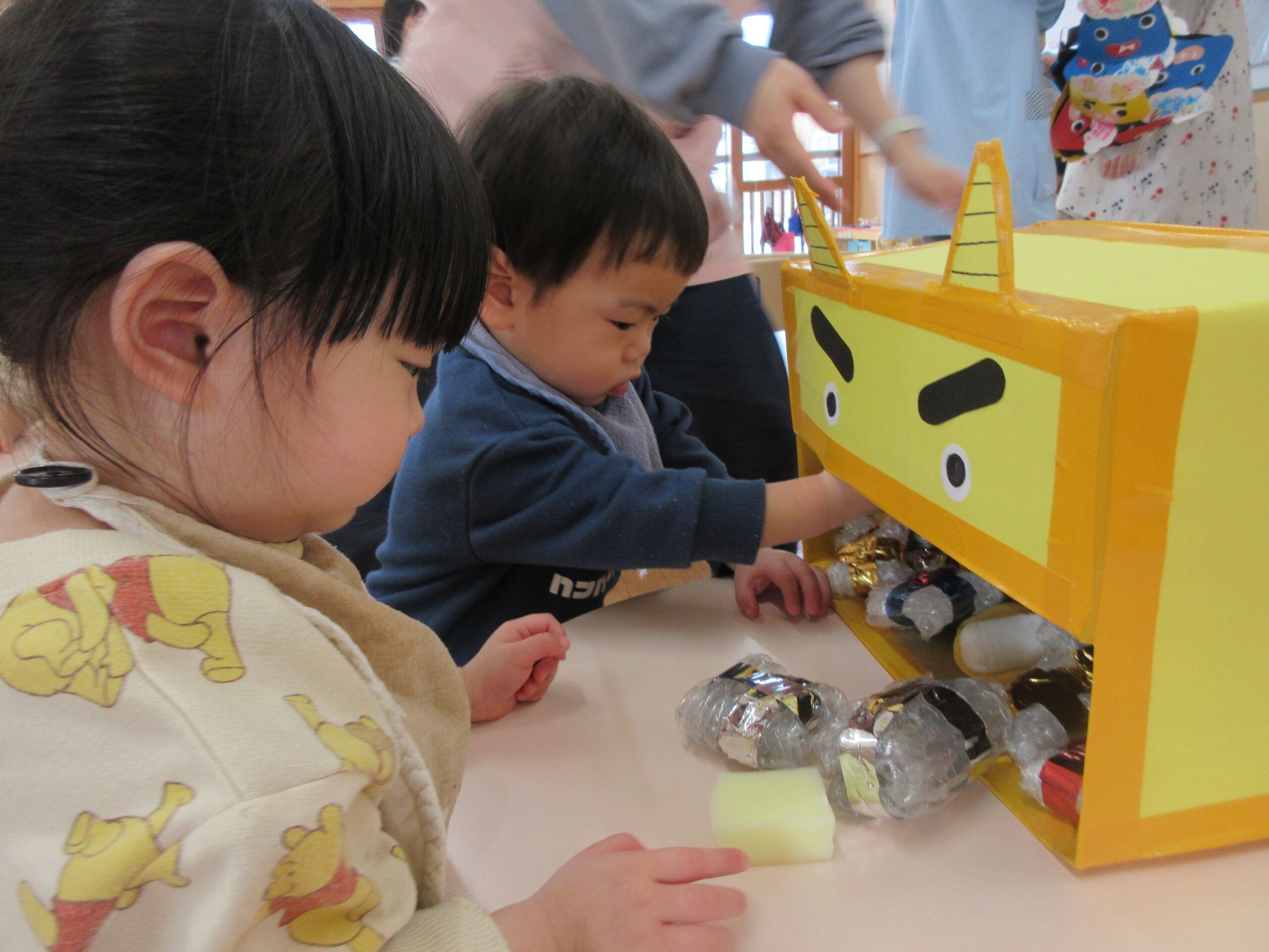 もも1組さんのお部屋に遊びに遊びに行き、豆まきごっこをしたりしましたよ!
