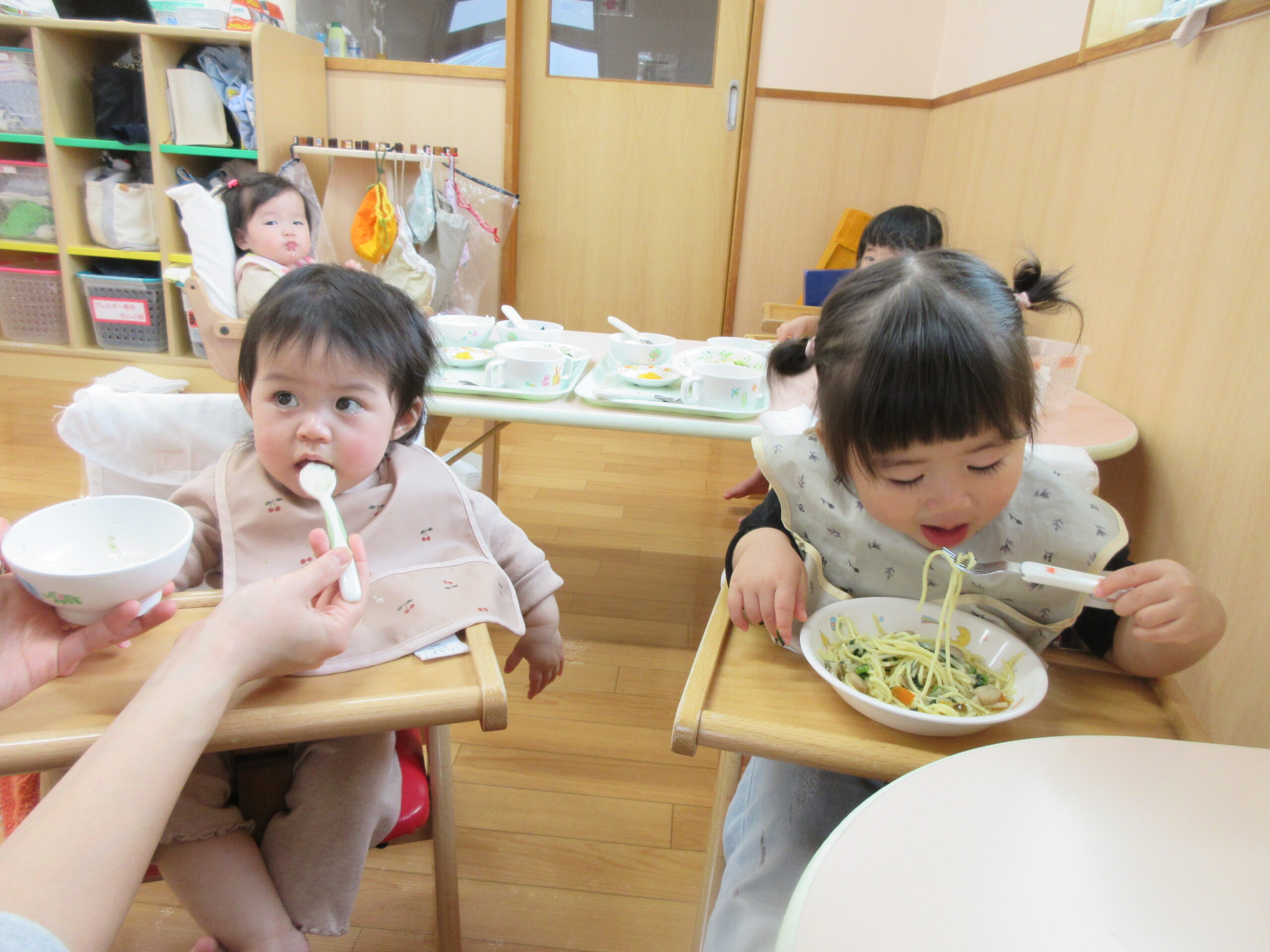 先生にあ~ん!としてもらったり、フォークを使って食べてみたり…それぞれの成長に合わせて美味しく食べています🌟