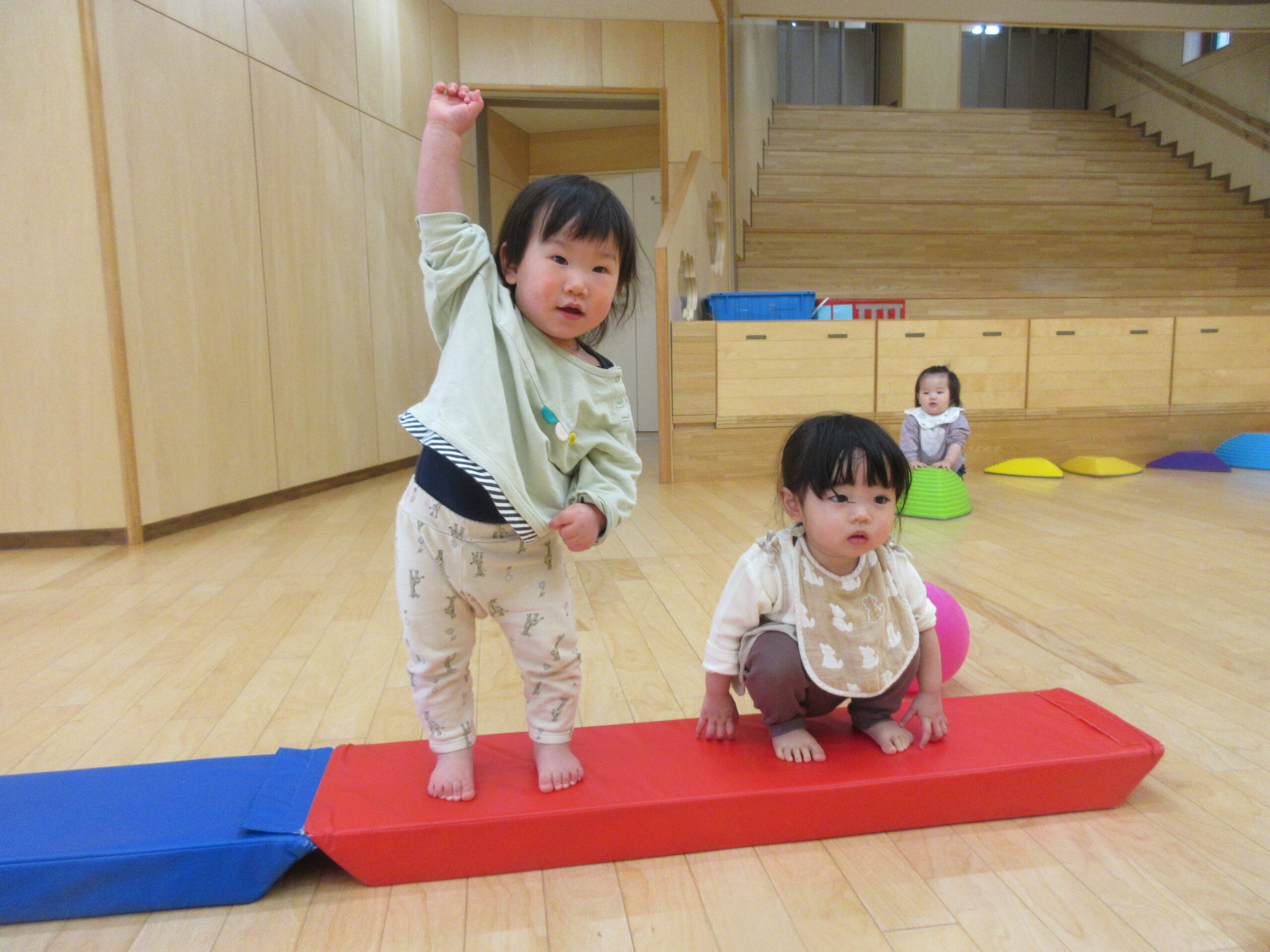 2階のホールを見つめて、大きな声で叫ぶお友だちを発見👀