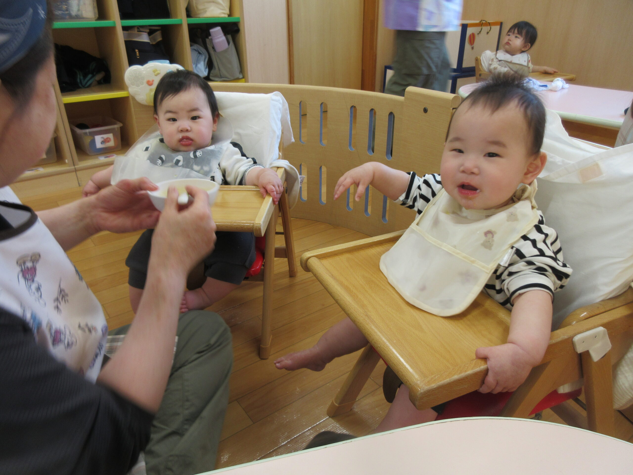 少しずつ保育園の生活に慣れてきたもも0組のこどもたち。