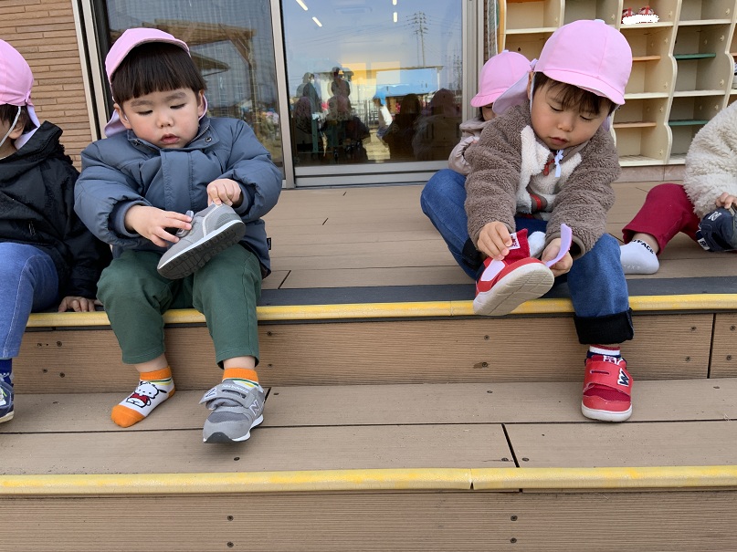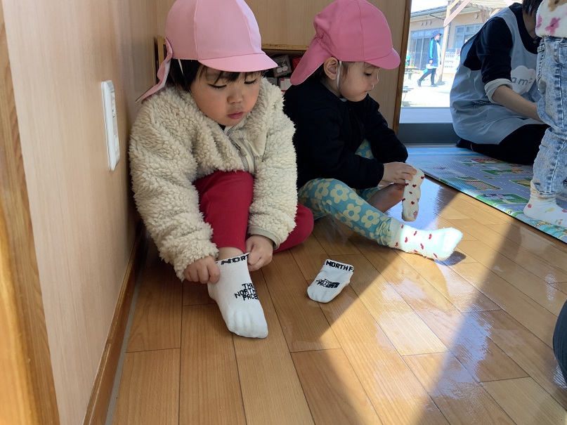 多くのお友だちが靴下や靴を自分で器用に履けるようになっています🧦