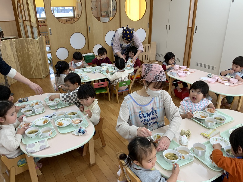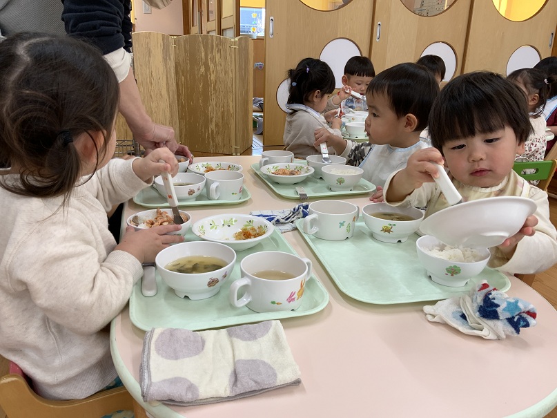 たくさん遊んだ後は楽しい給食の時間♪