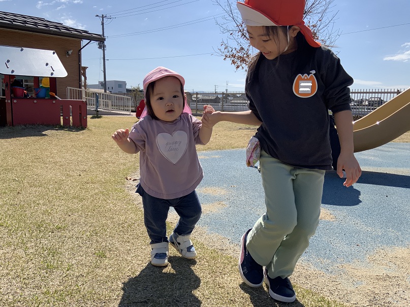 お姉さんと手をつないで