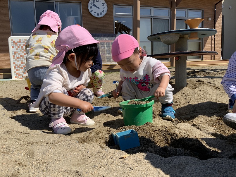 お友だちと一緒に砂遊び、楽しいね😄