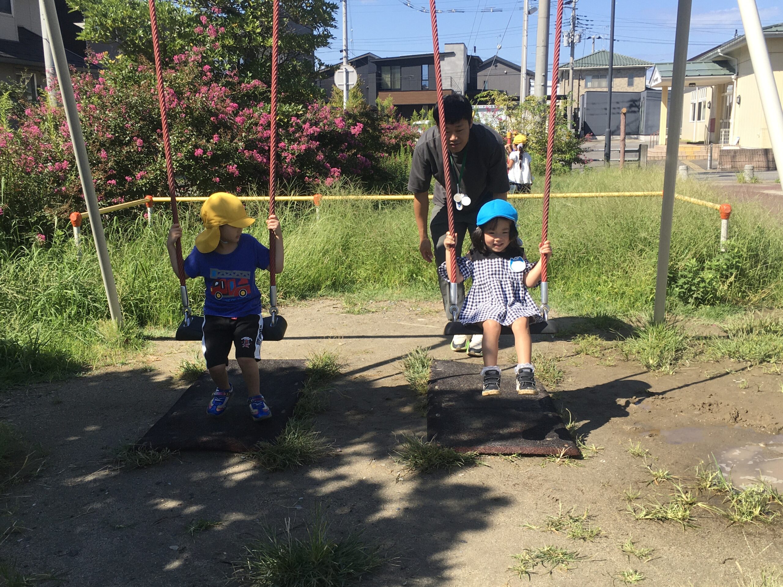 お友だちと一緒に滑り台を滑ったり、先生に押してもらいながらブランコで