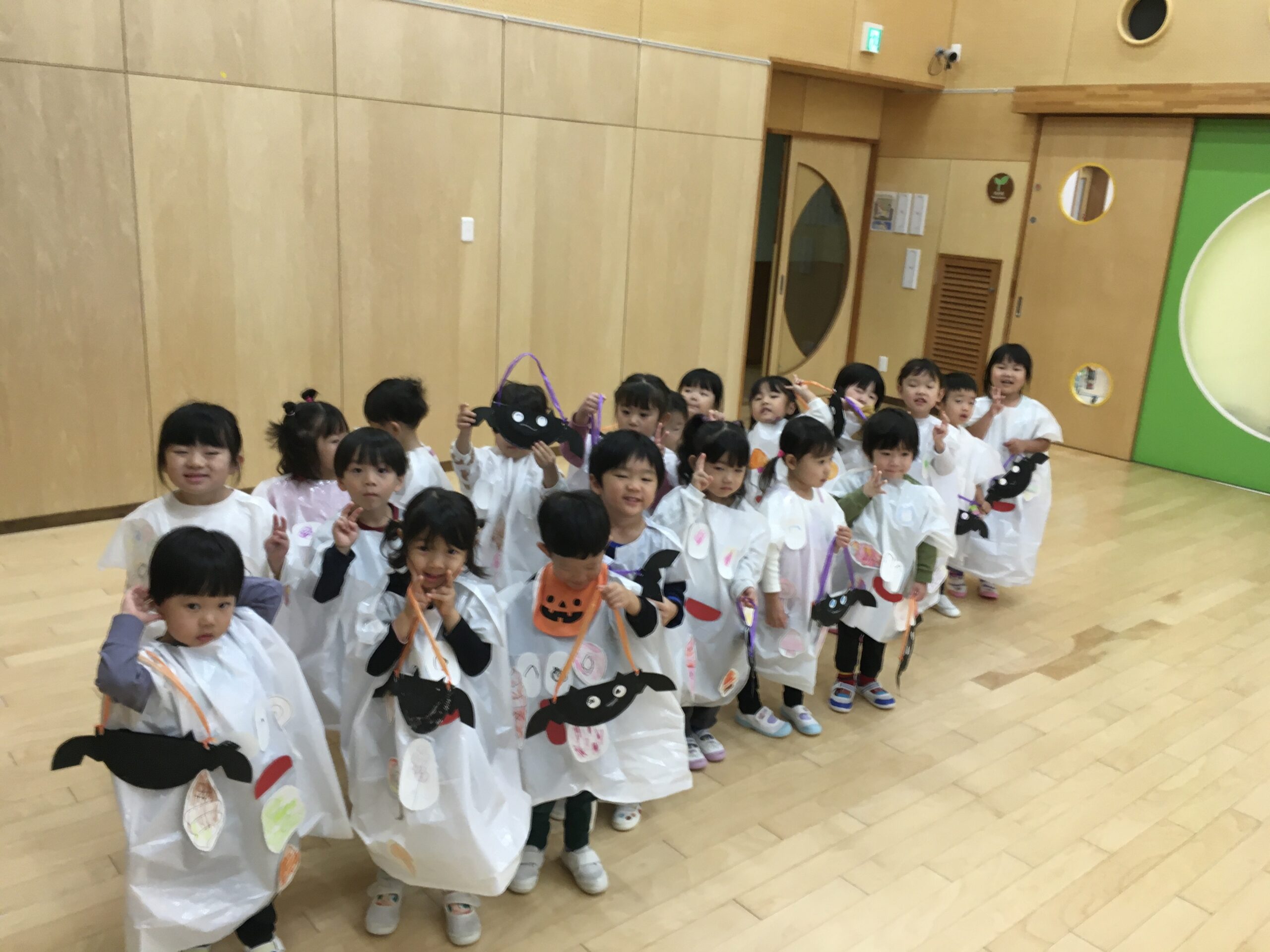ハロウィンパーティーに向けてたんぽぽ組はおばけの衣装とコウモリの手作りバックを作りましたよ!