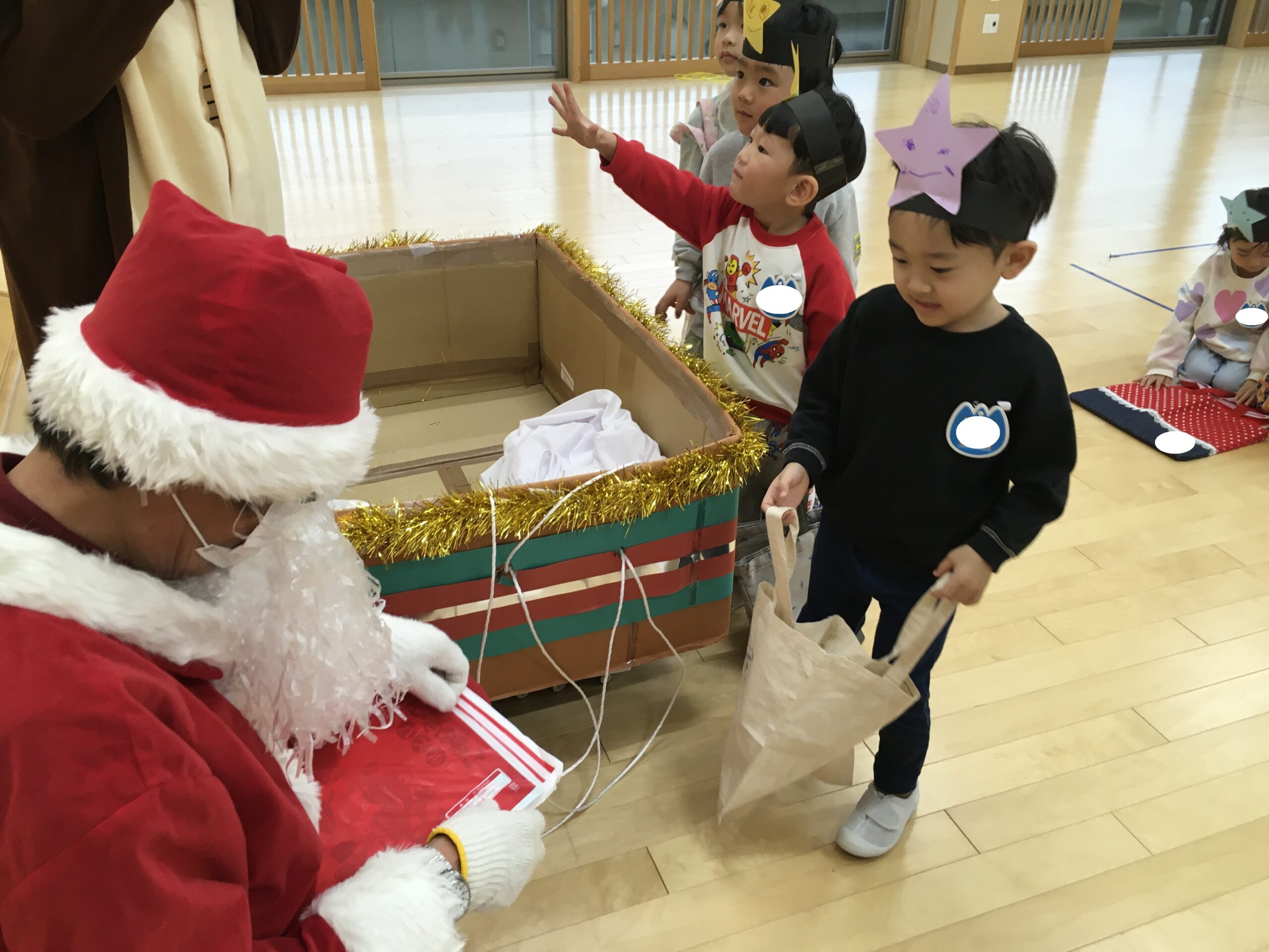 朝登園してからすぐにこどもたちから「サンタさん来たよ!」「プレゼントもらったの!」と