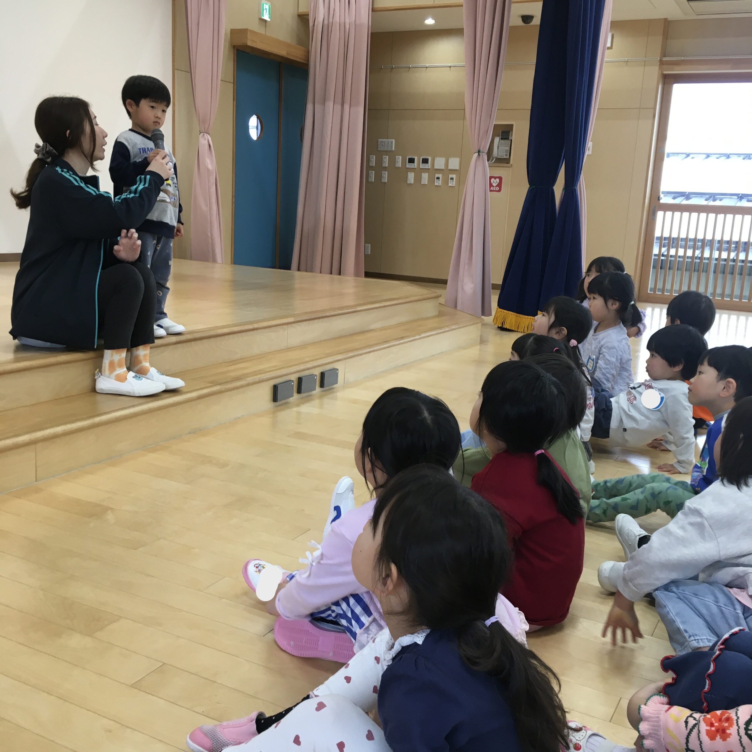 みんなの前でお休み中の出来事を発表してみたよ🎤