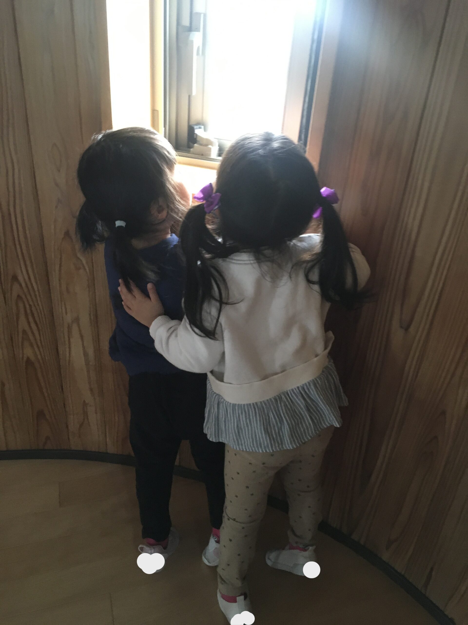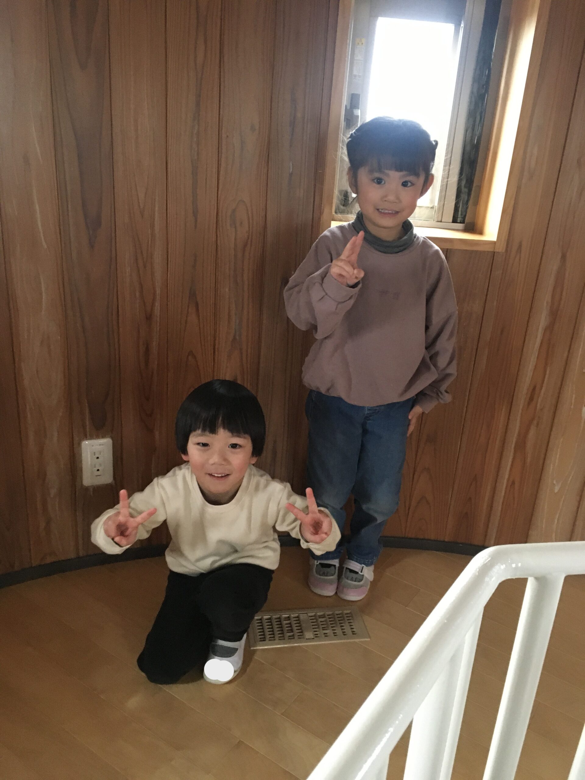 「今日はみんなで火の見やぐらまで行ってみる?」と聞いてみると「行きた~い!高いところ好き!でも怖いかな?狭いけど行けるのかな?」とドキドキワクワクしながらのぼっていきましたよ!