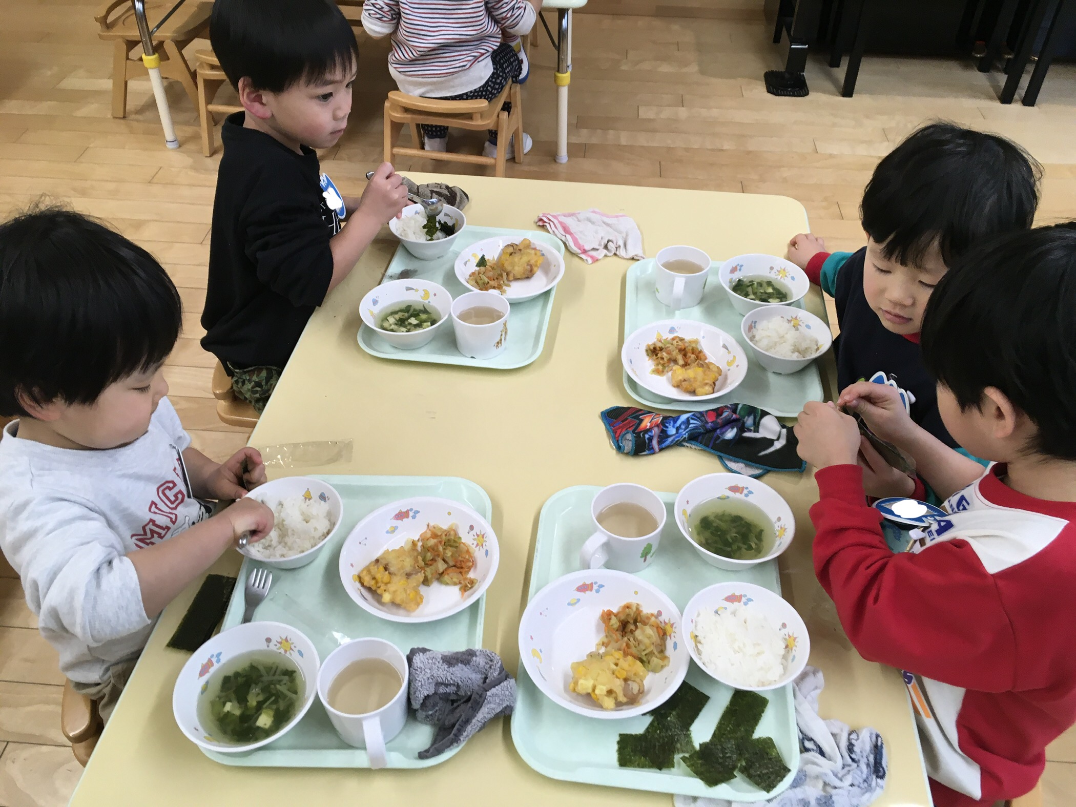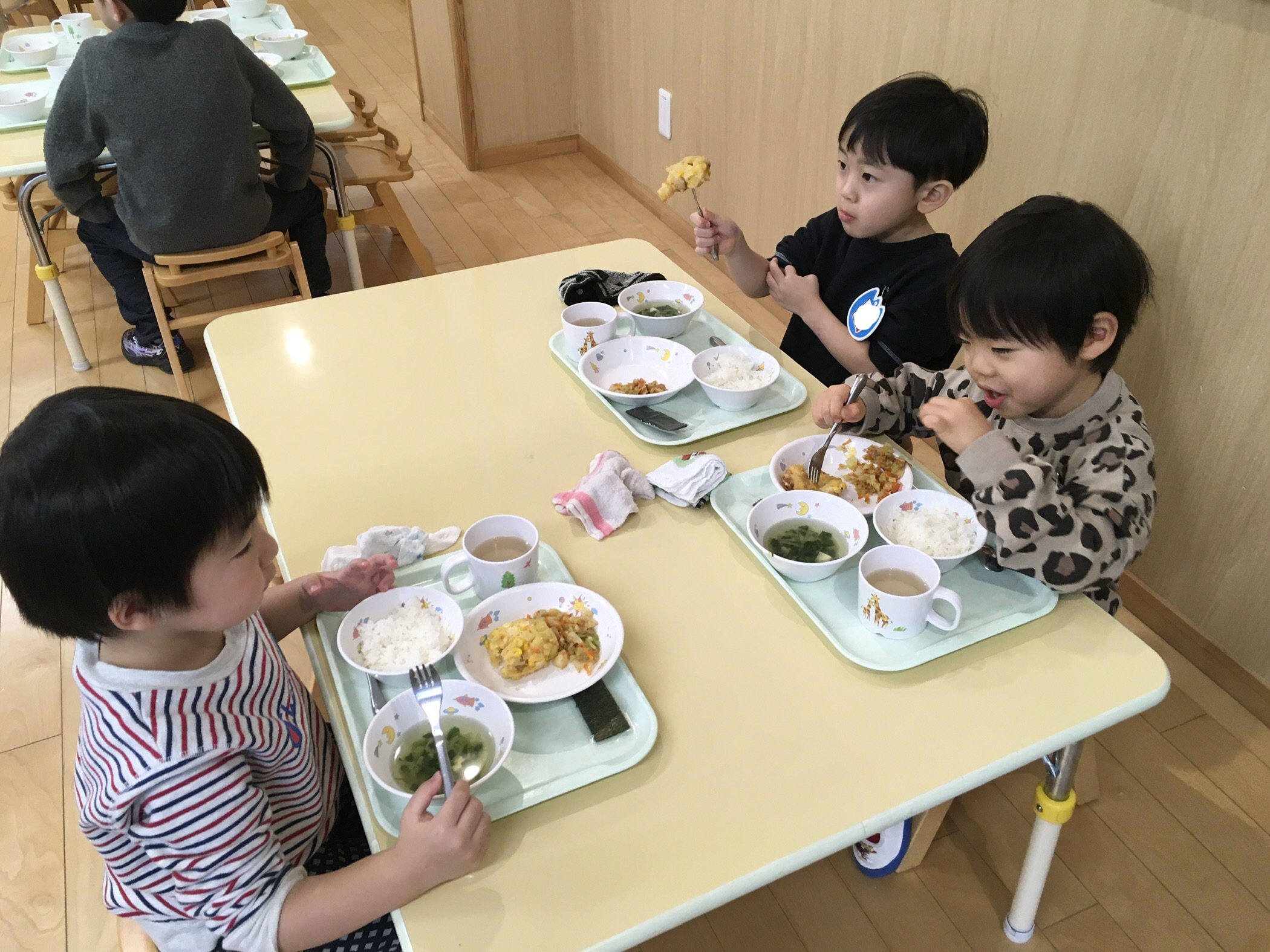 食べた後はおかわりをする友だちもいたりと食欲旺盛なたんぽぽ組さん😋