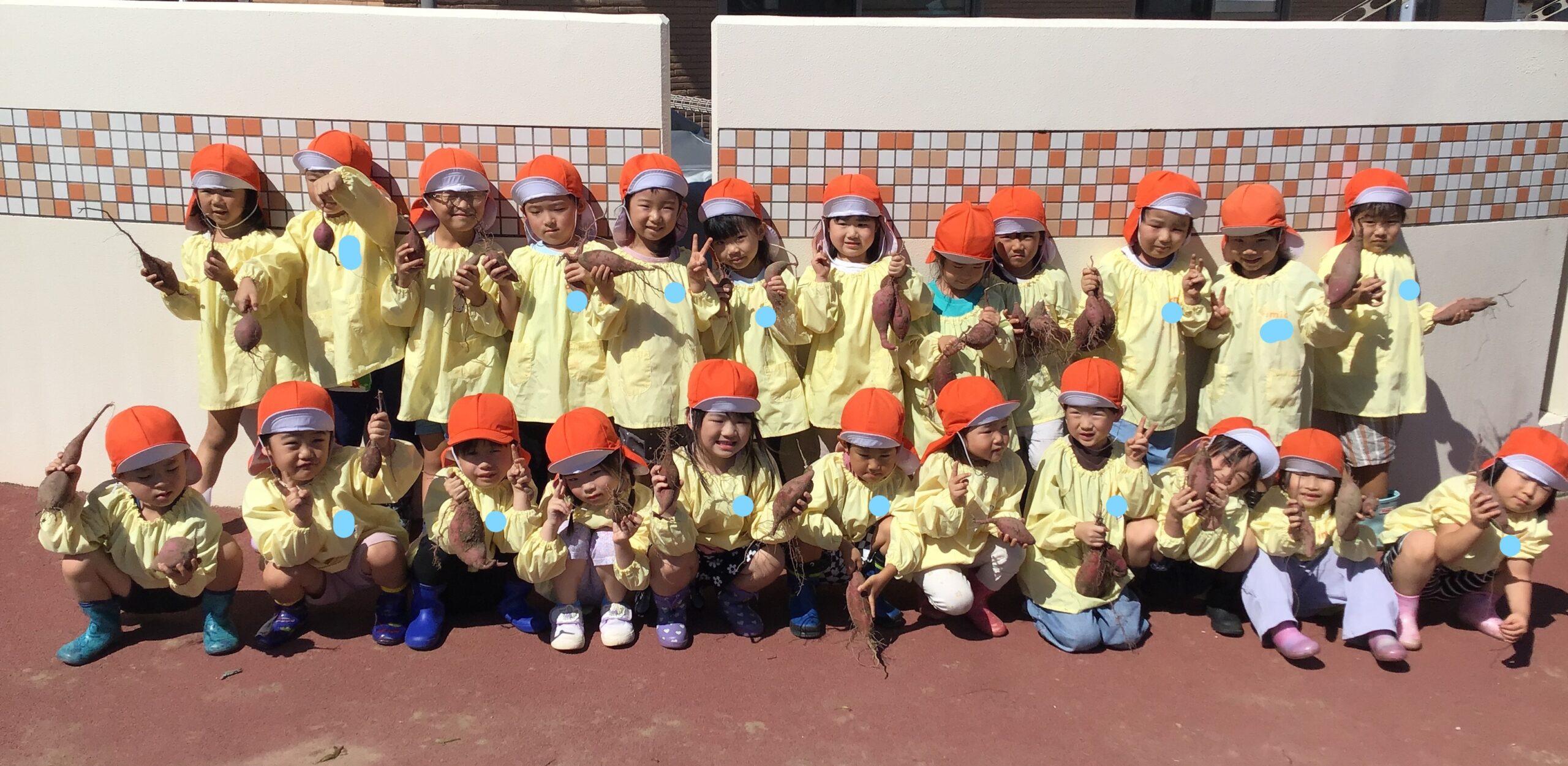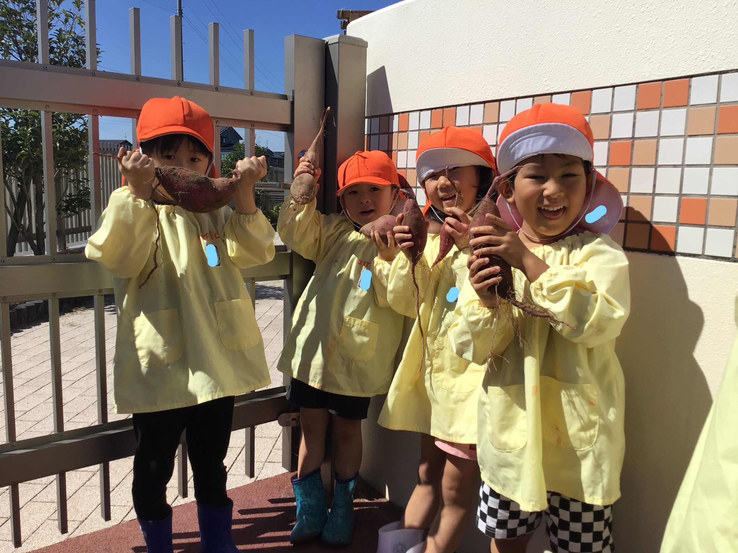 大興奮のこどもたちでした。自分で収穫したサツマイモを大事そうに抱えている