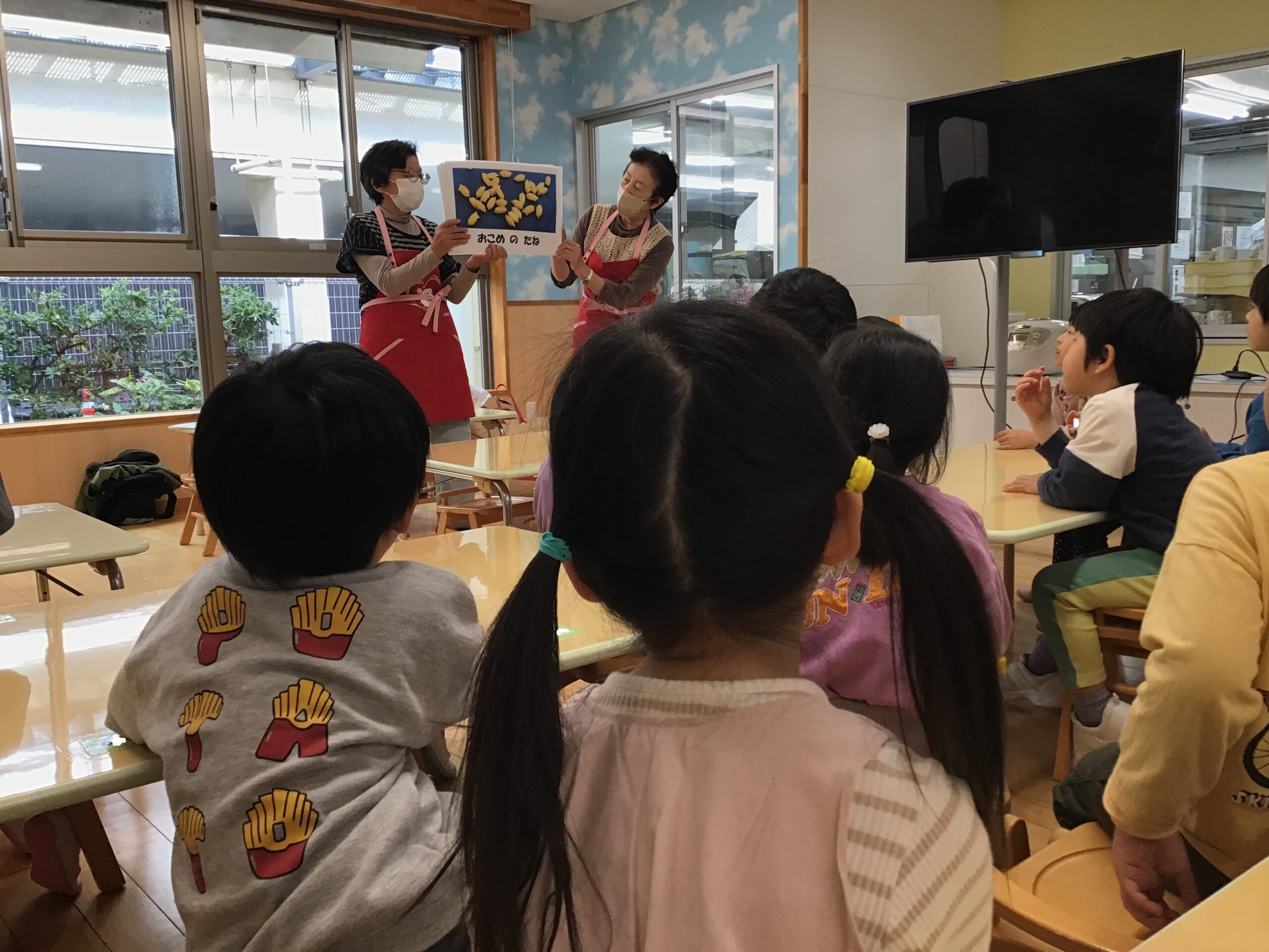 「お米って出来るまで大変なんだね!」「お米って色々なものに変身するんだね!」と興味津々に聞いていたこどもたちでした👀✨