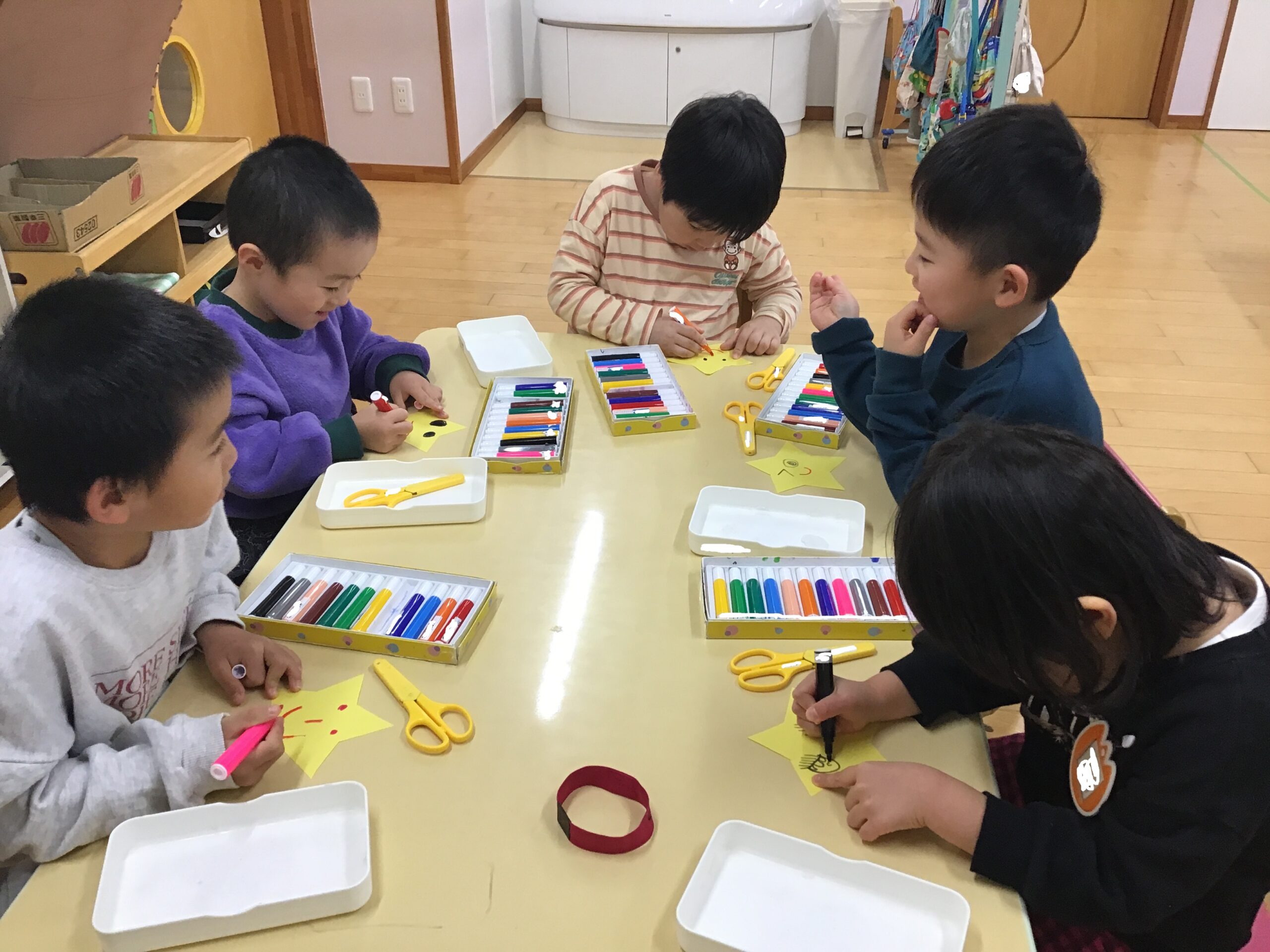 「このお星さまのお顔可愛い!」「雪だるまだ!いいね~!」とお友だちを褒める心が温まるような素敵な言葉がお部屋の中からたくさん聞こえてきましたよ♥