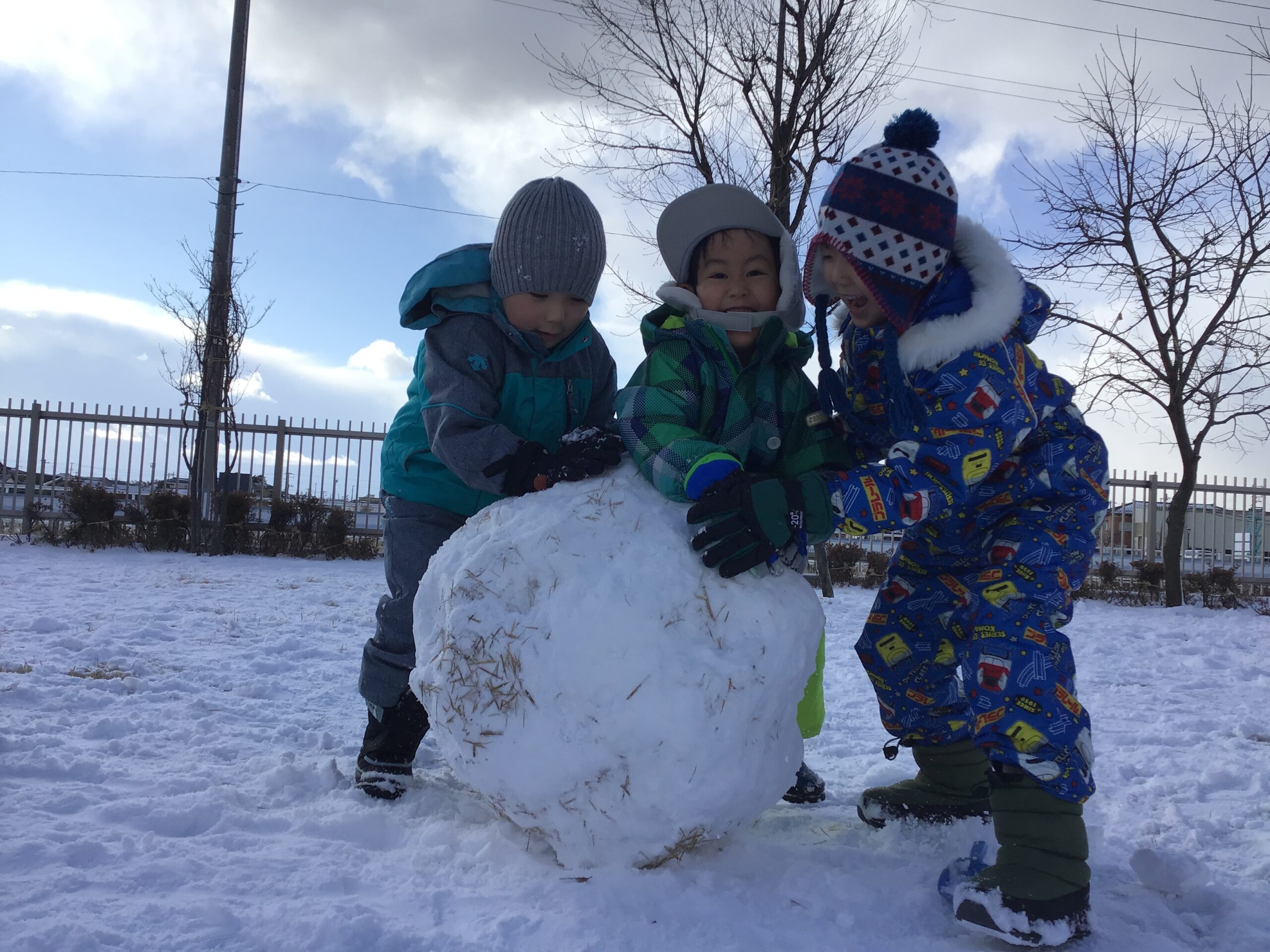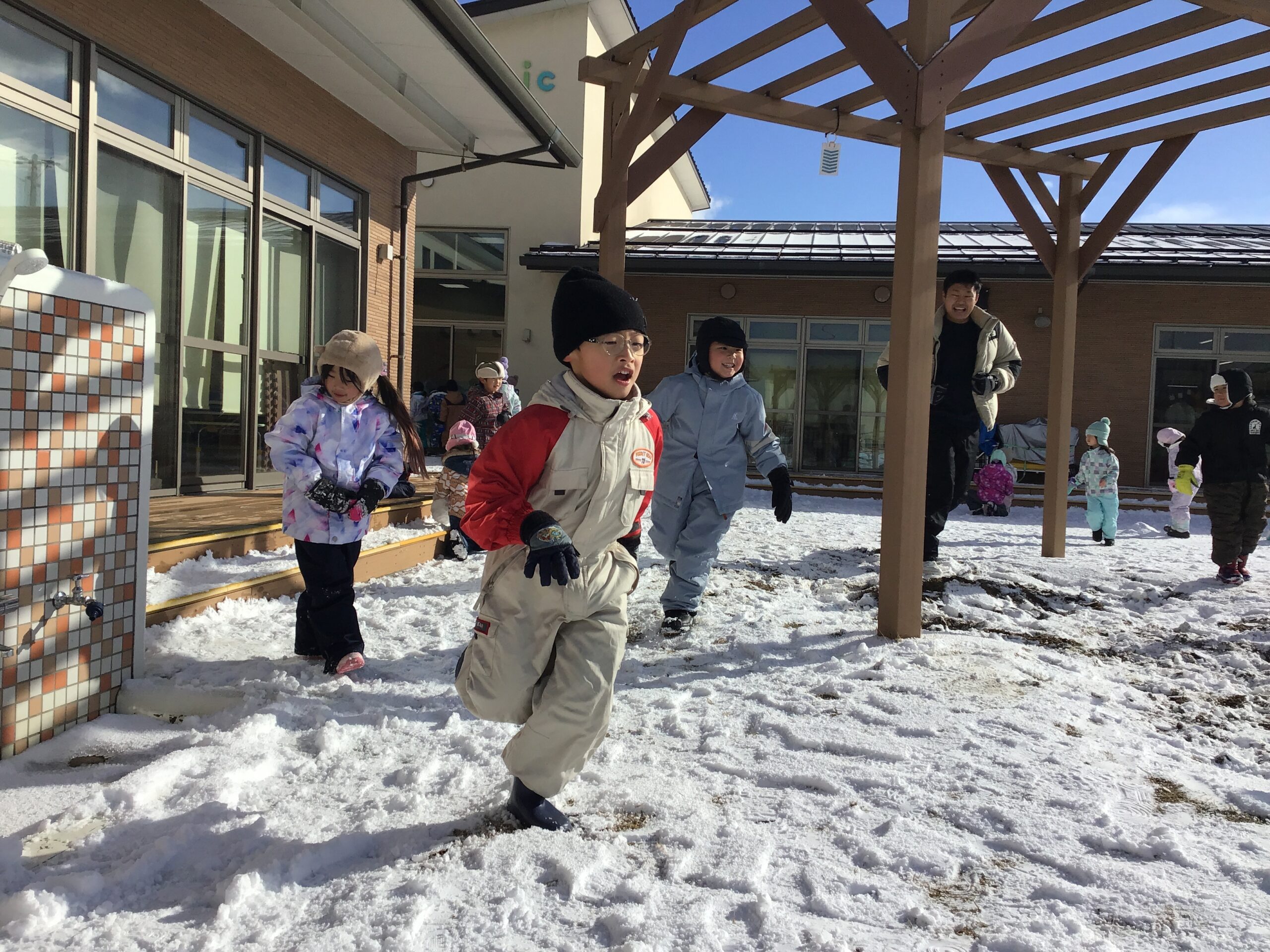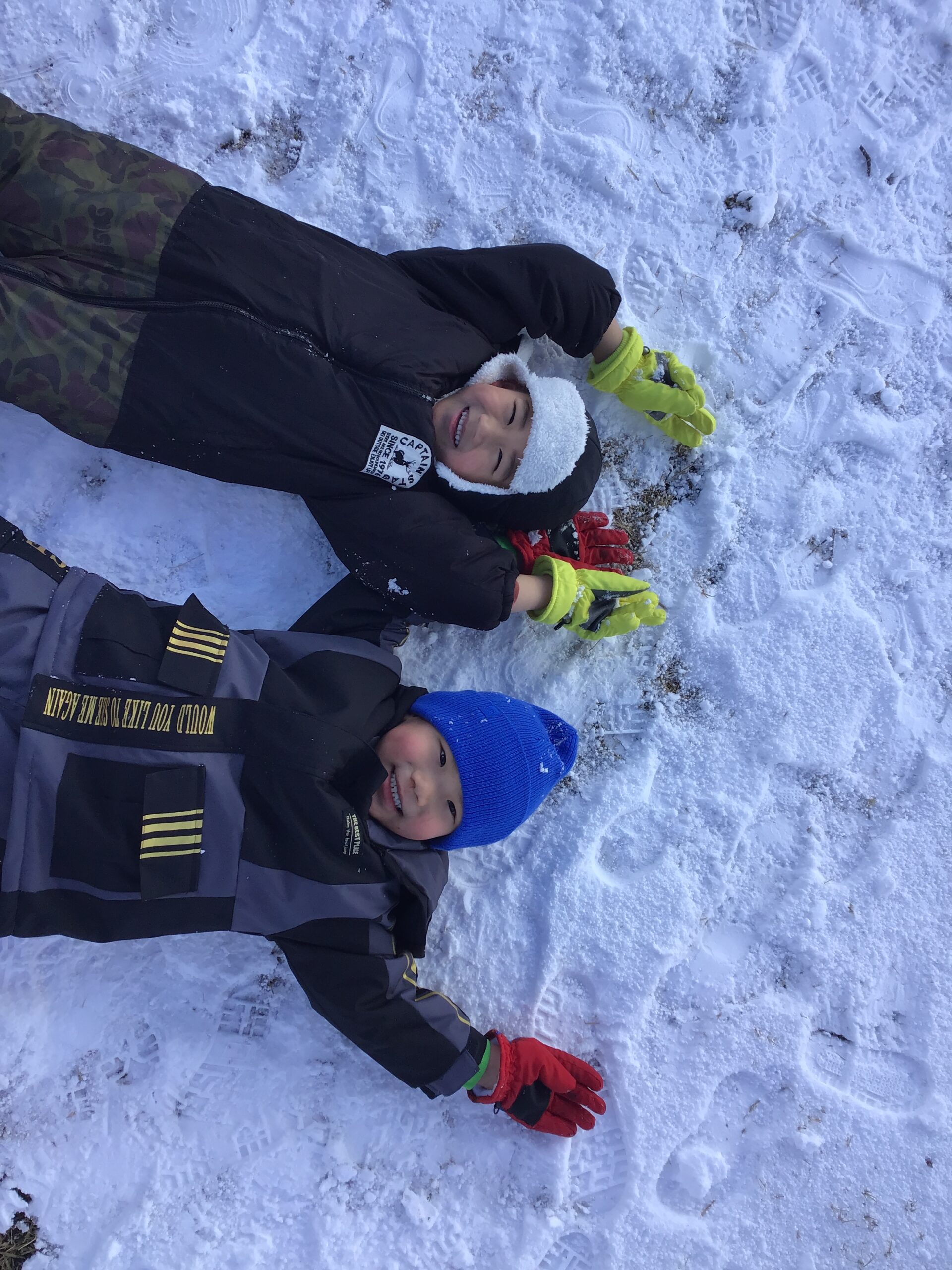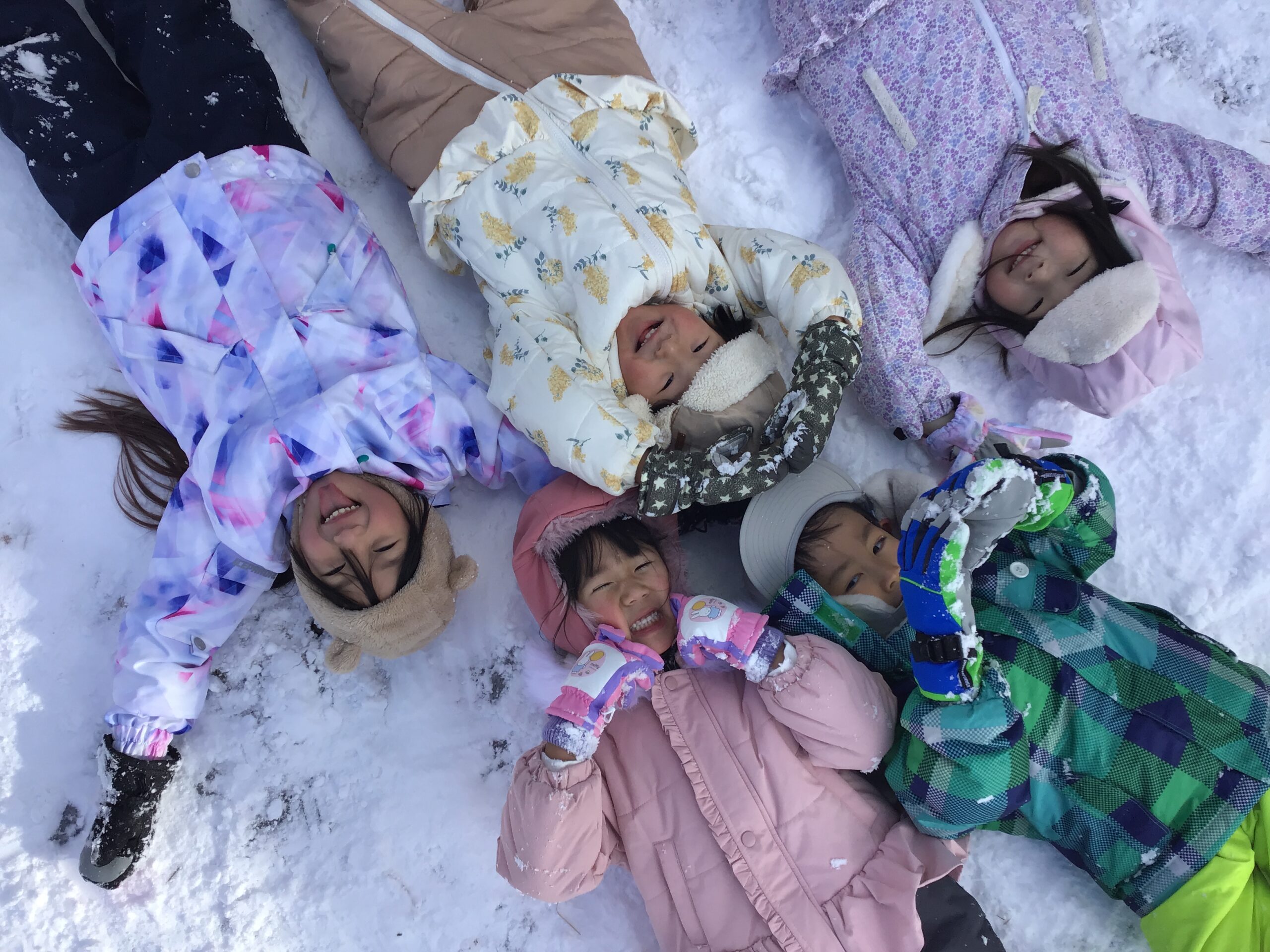 ふかふかの雪で寝転んだり、力を合わせて雪だるまを作ったり、雪合戦をしたり、、、