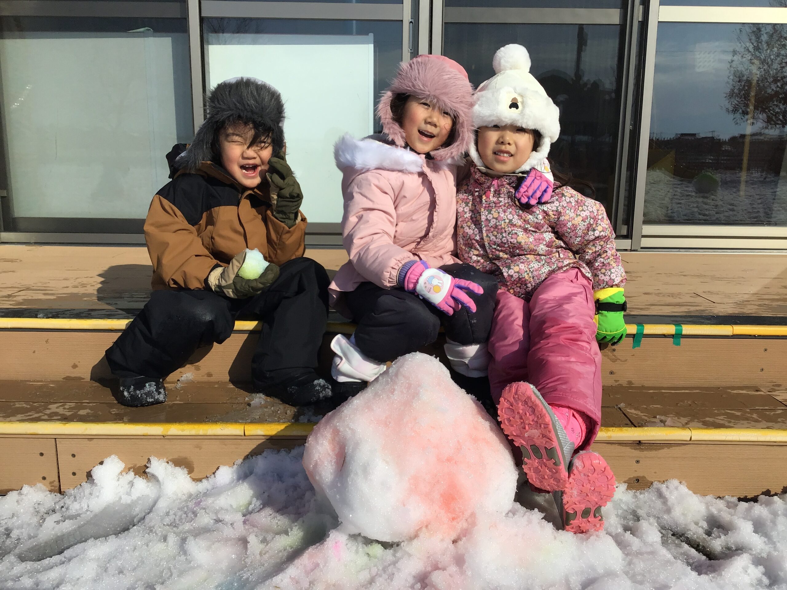 カップに雪を入れたり、特大かき氷を作ったり、色々な色を組み合わせて虹色ボールを作ったり思い思いに遊んでいましたよ!